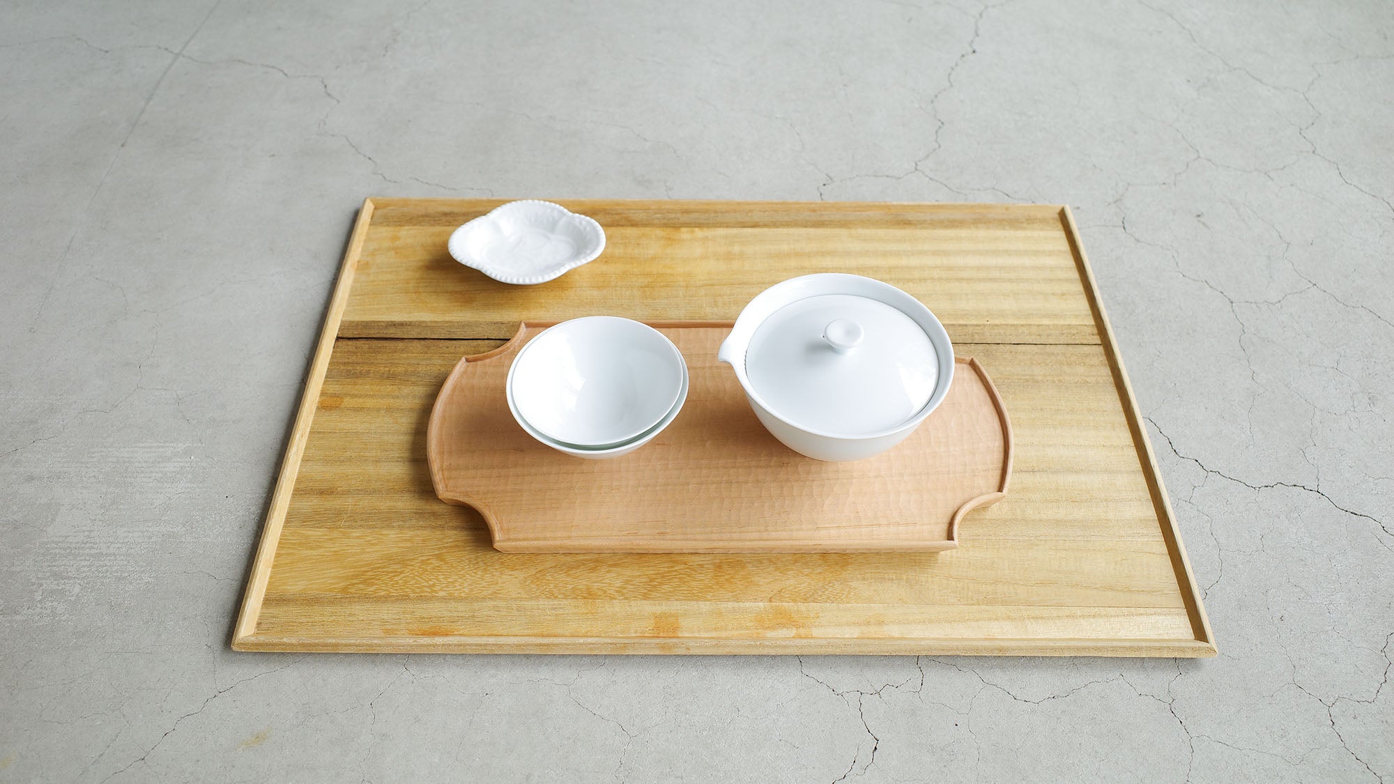 〈Styling_09〉では、陶器と木の質感の違いをお伝えしました。今回の〈Styling_010〉は、磁器と木の合わせです。