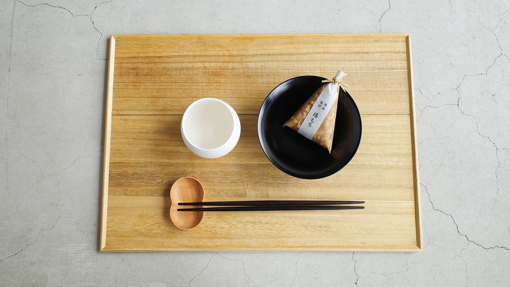 「ハレの器」をテーマに決めたときに、必ず入れると決めていた後藤睦さんの「葉反鉢4.5寸黒漆」。木は熱伝導率が低い素材なため、温かいものは温かく、冷たいものは冷たいままで食べることができます。