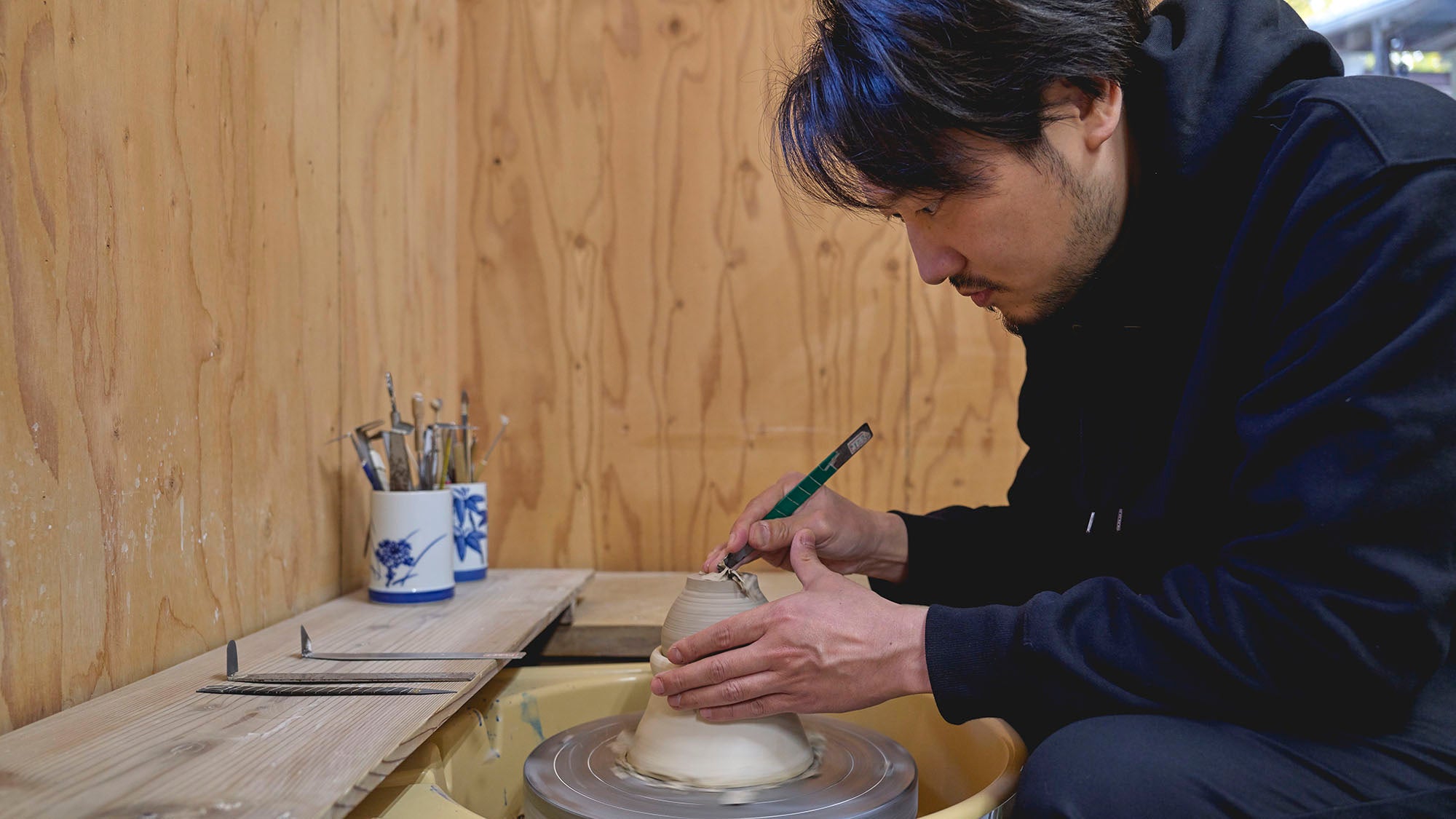 京都の清水寺の麓に工房を構える、陶芸家・中村譲司(なかむら・じょうじ)さん。京都精華芸術大学で陶芸を学び、卒業後は陶芸家の河島浩三氏、喜信氏に師事しました。20代後半で独立し、自身が主宰する工房「G-studio」を設立しています。