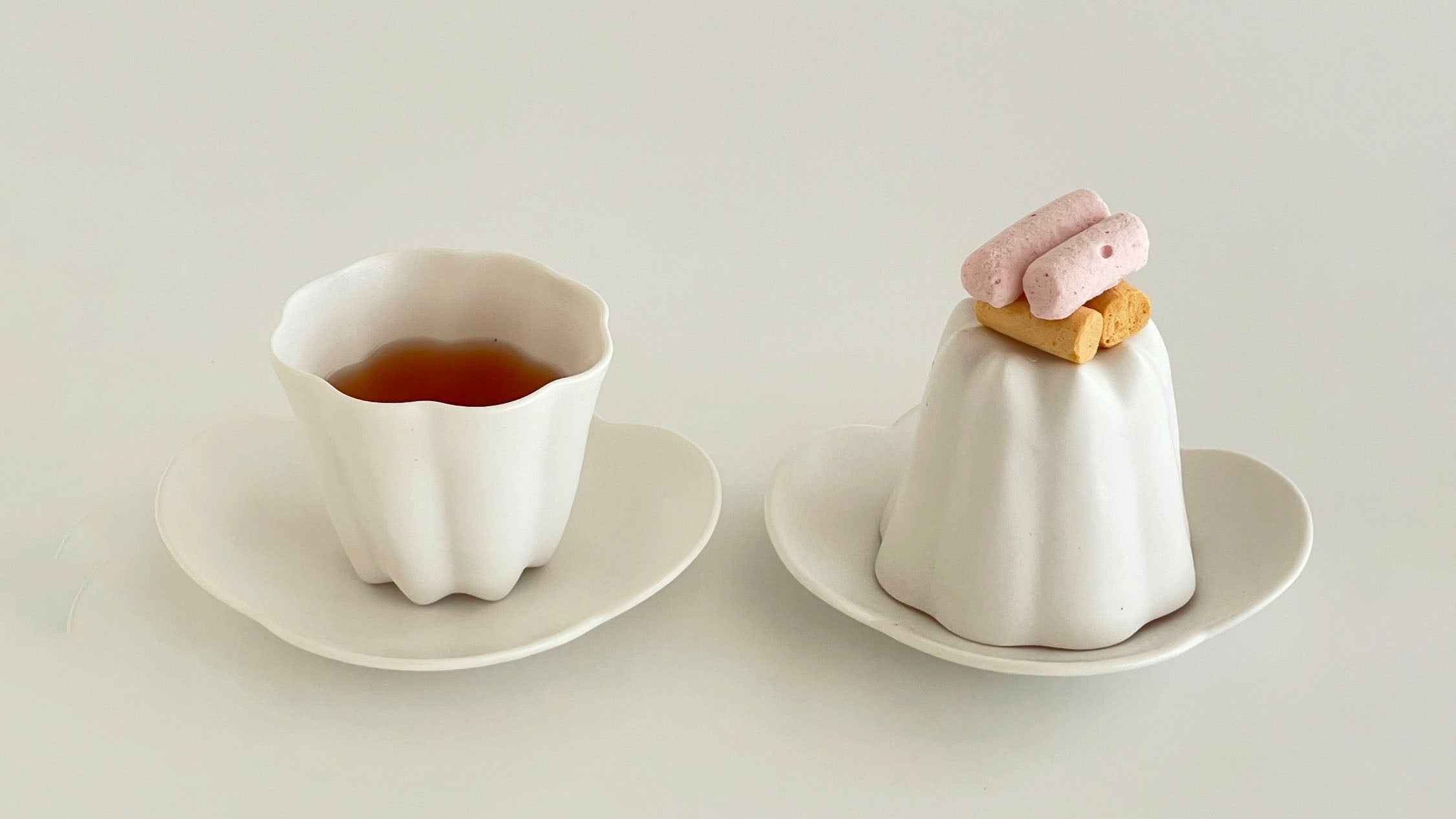 なんてかわいいんだ!さらにカヌレ茶杯をひっくり返せば、完全に白いカヌレにしか見えない。