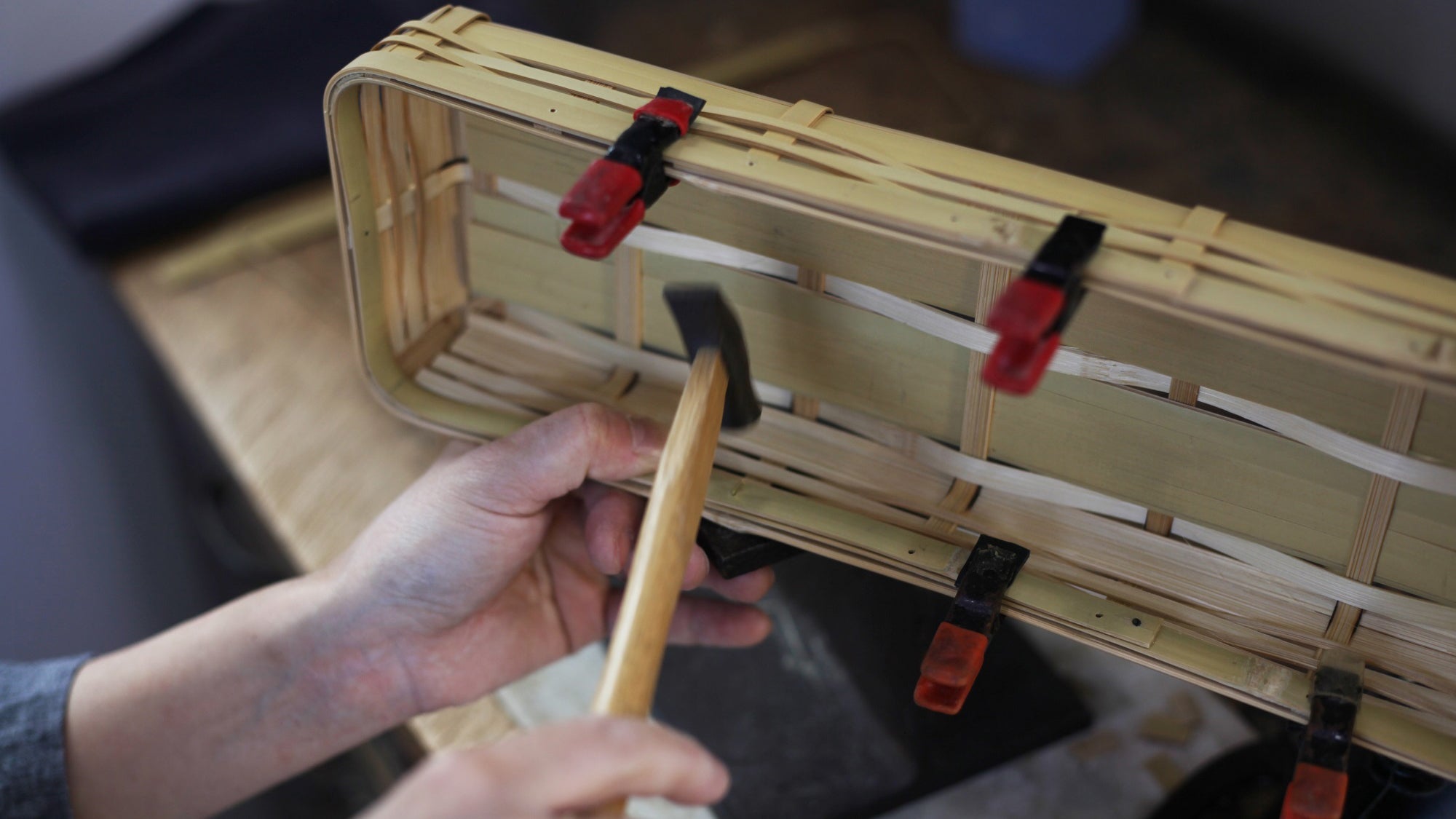 大分県別府市で、小代正さん・美穂さんご夫婦とスタッフの計3名で制作している「おじろ角物店」。角物(かくもの)とは、竹で作られた四角いかごのことで、この地域に古くから伝わる生活の道具です。
