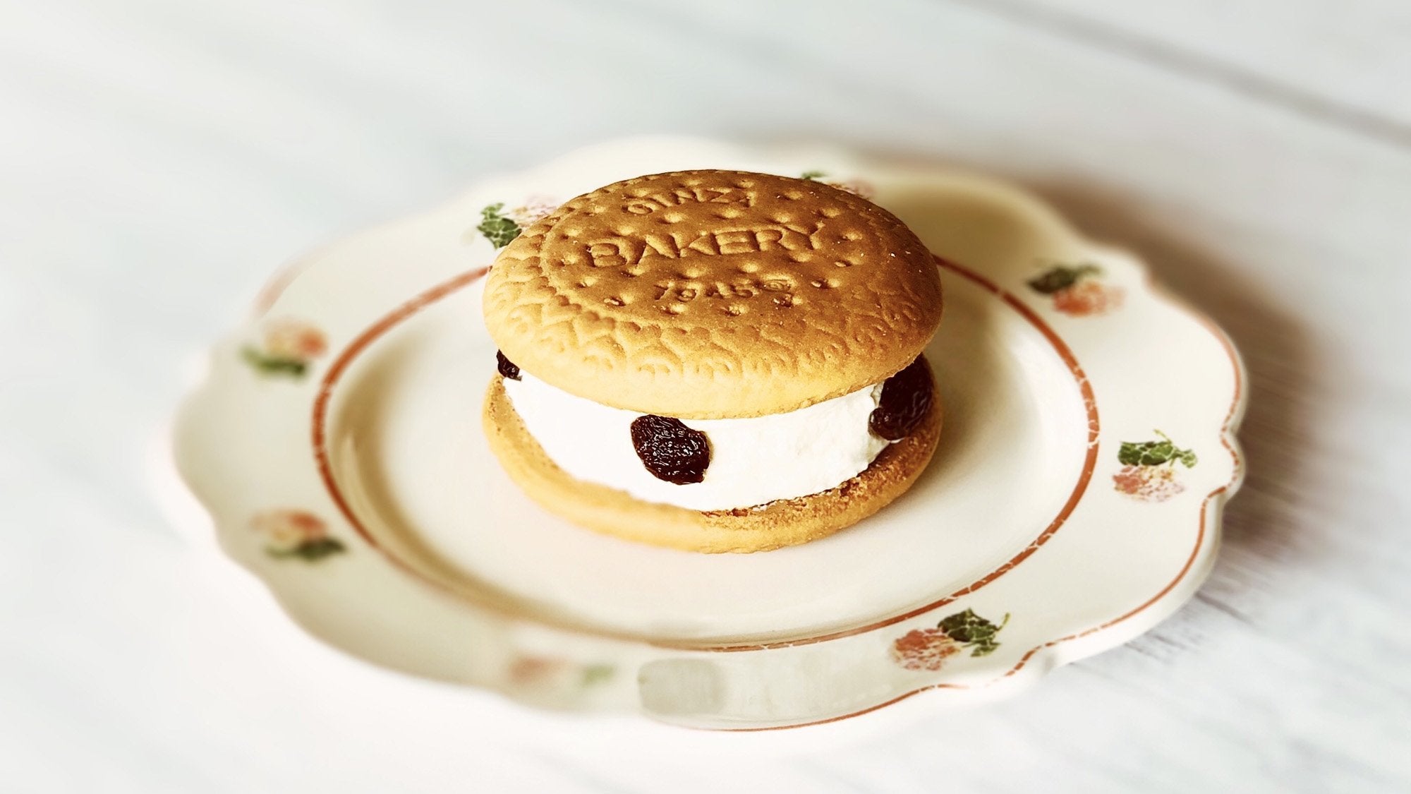 この「ビスケットサンド」、パッと見はビスケットですが、実はソフトなカステラ風の生地なんです。そんな生地に挟まった生クリームは、まるでアイスクリームような舌触り。このテクスチャーを保つ秘訣は、マイナス1℃で保存販売をすることなんだとか。