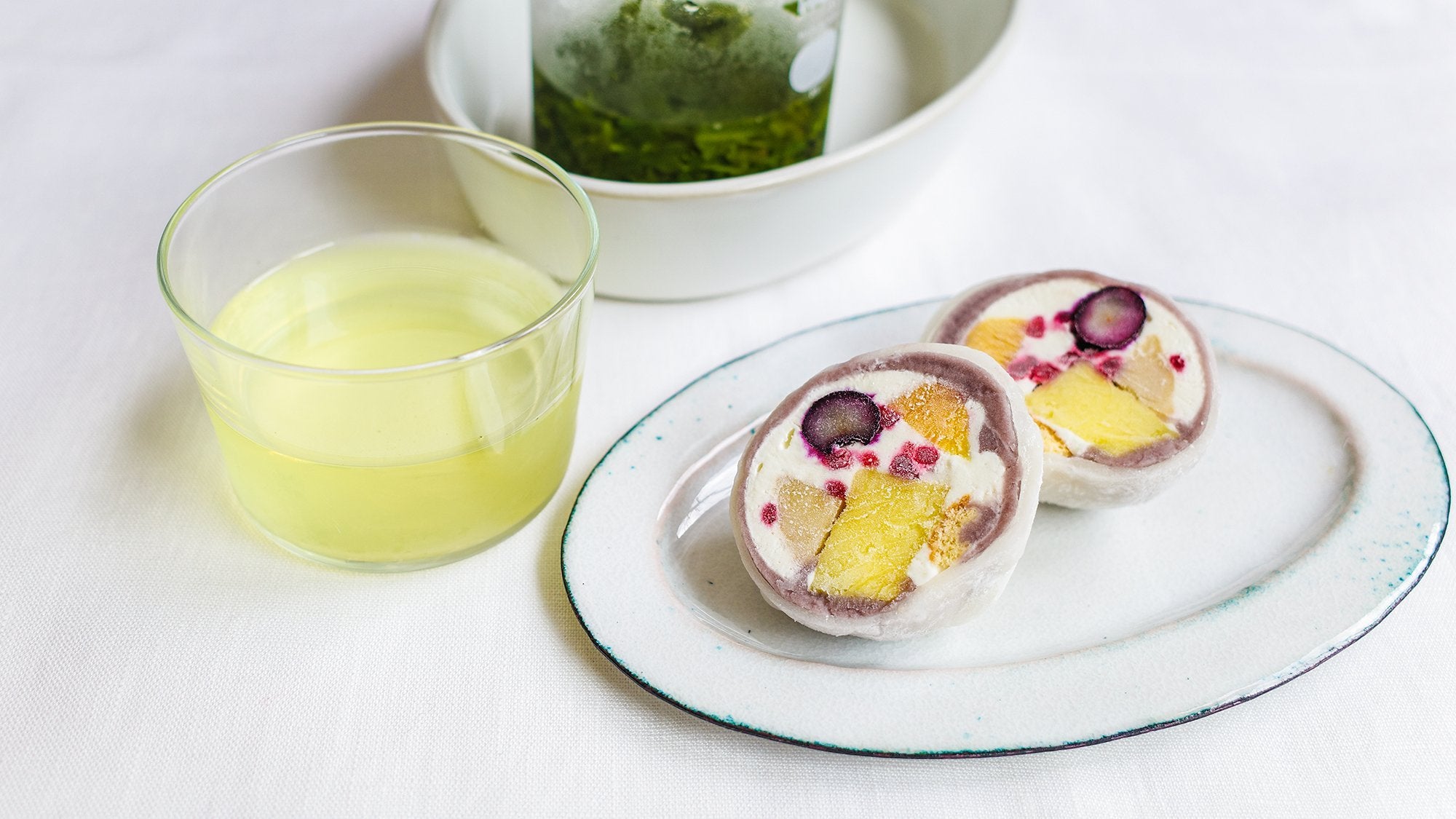今回、食いしんぼうデザイナーの神(じん)が紹介するのは、新しい夏のお茶のおとも。トロピカルな果物がぎゅっと詰め込まれたフルーツパフェ大福「鴻池花火(こうのいけはなび)」です。