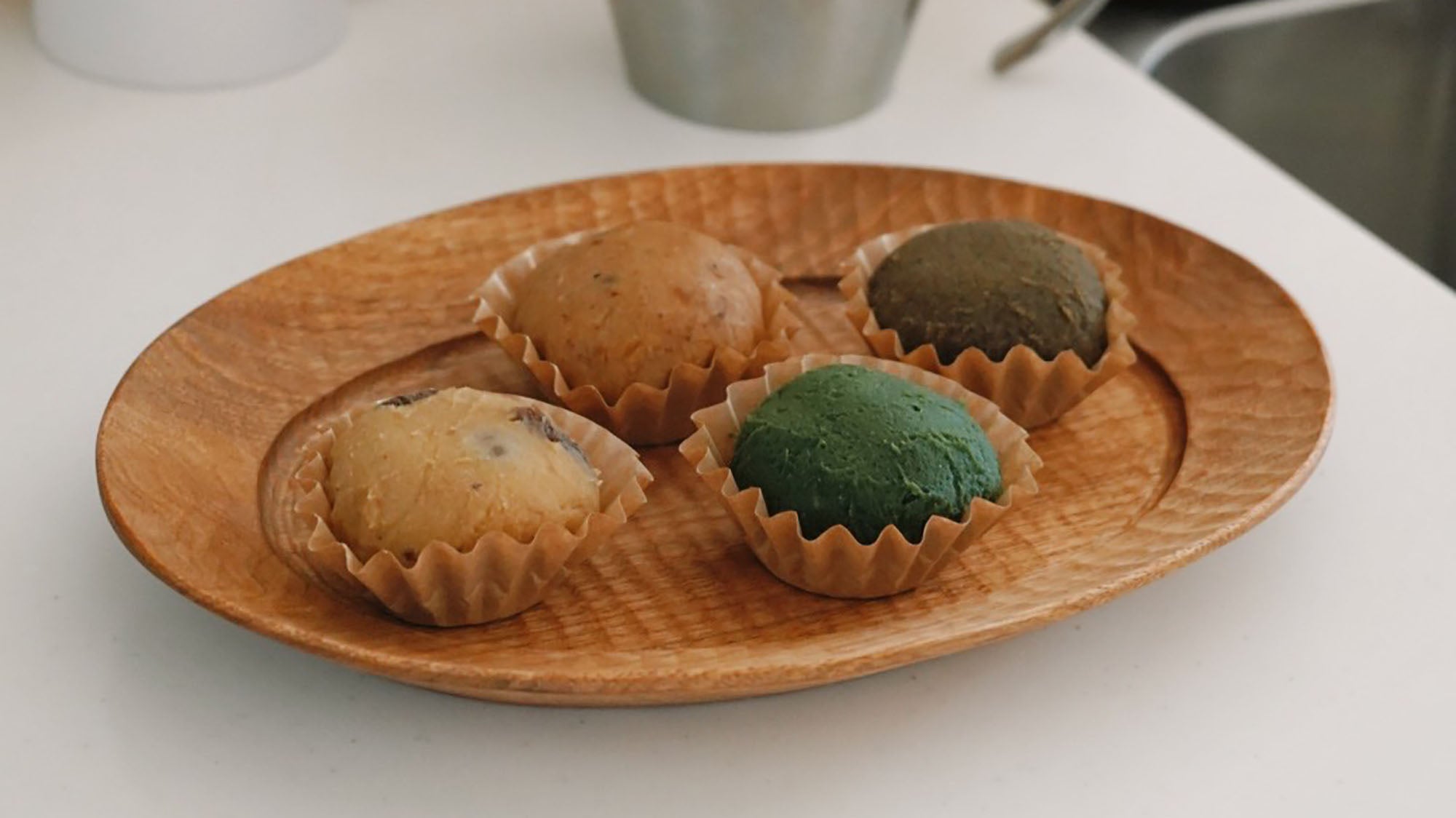 高台付きでやわらかな雰囲気をまとう加藤かずみさんのデザートカップに乗せていただくと、穏やかでちょっとよそ行きな気分のお茶の時間を演出できそうです。