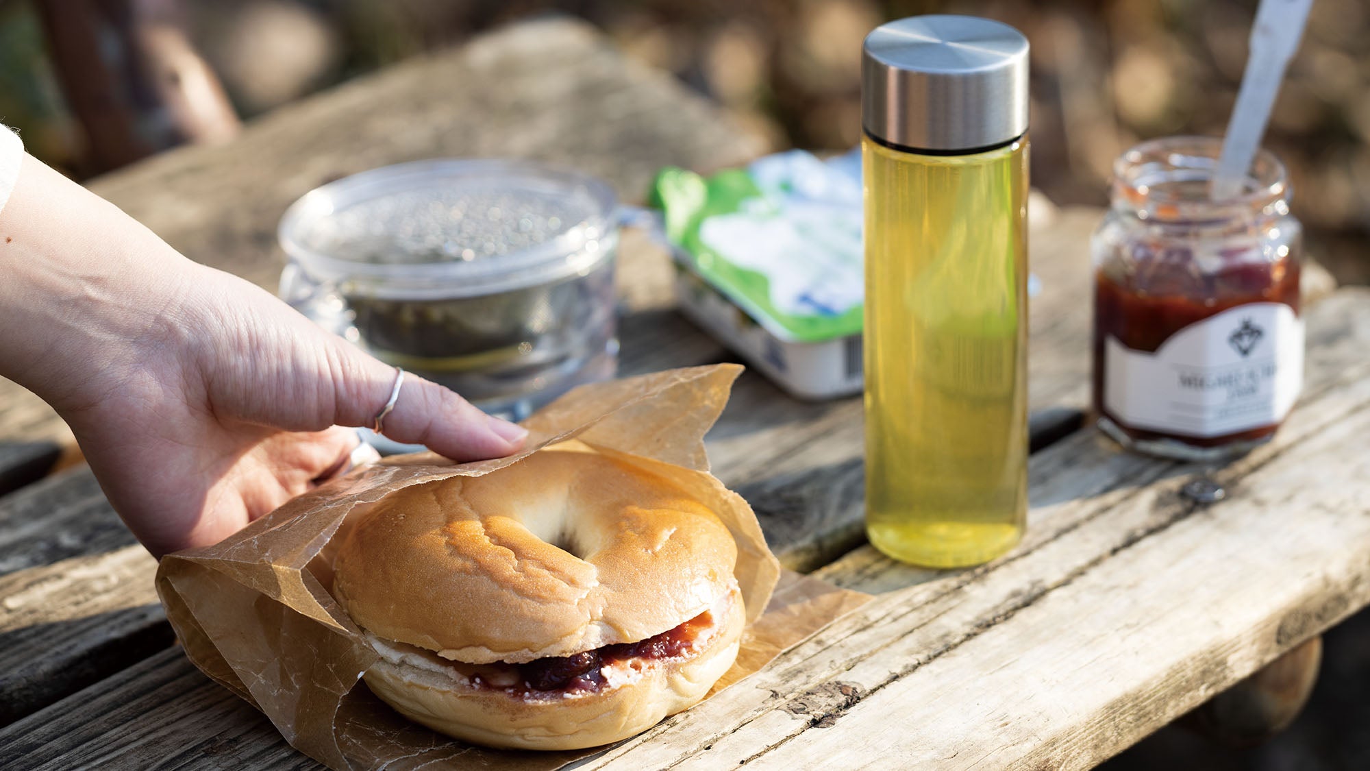 ふわりと漂う桜の葉の香りには、やっぱり甘いものを合わせたくなります。ベーグルにさっぱりとしたクリームチーズ、旬の始まりを迎えるいちごのジャムをはさんだ簡単ベーグルサンドで、春の恵みをたっぷりと味わってください。