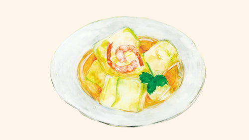 秋のペアリングレシピ「004 やぶきた やめ」×「甘エビと冬瓜の煮物」