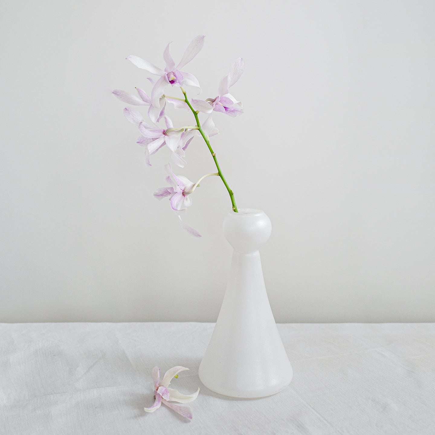 てるてる坊主のような可愛いらしさを感じる「フワラーベース12」。底の接地面が広く安定感があります。お水をしっかりを入れれば、少しボリューム感のあるお花でも支えてくれます。が、背の高いお花の入れすぎにはご注意を。