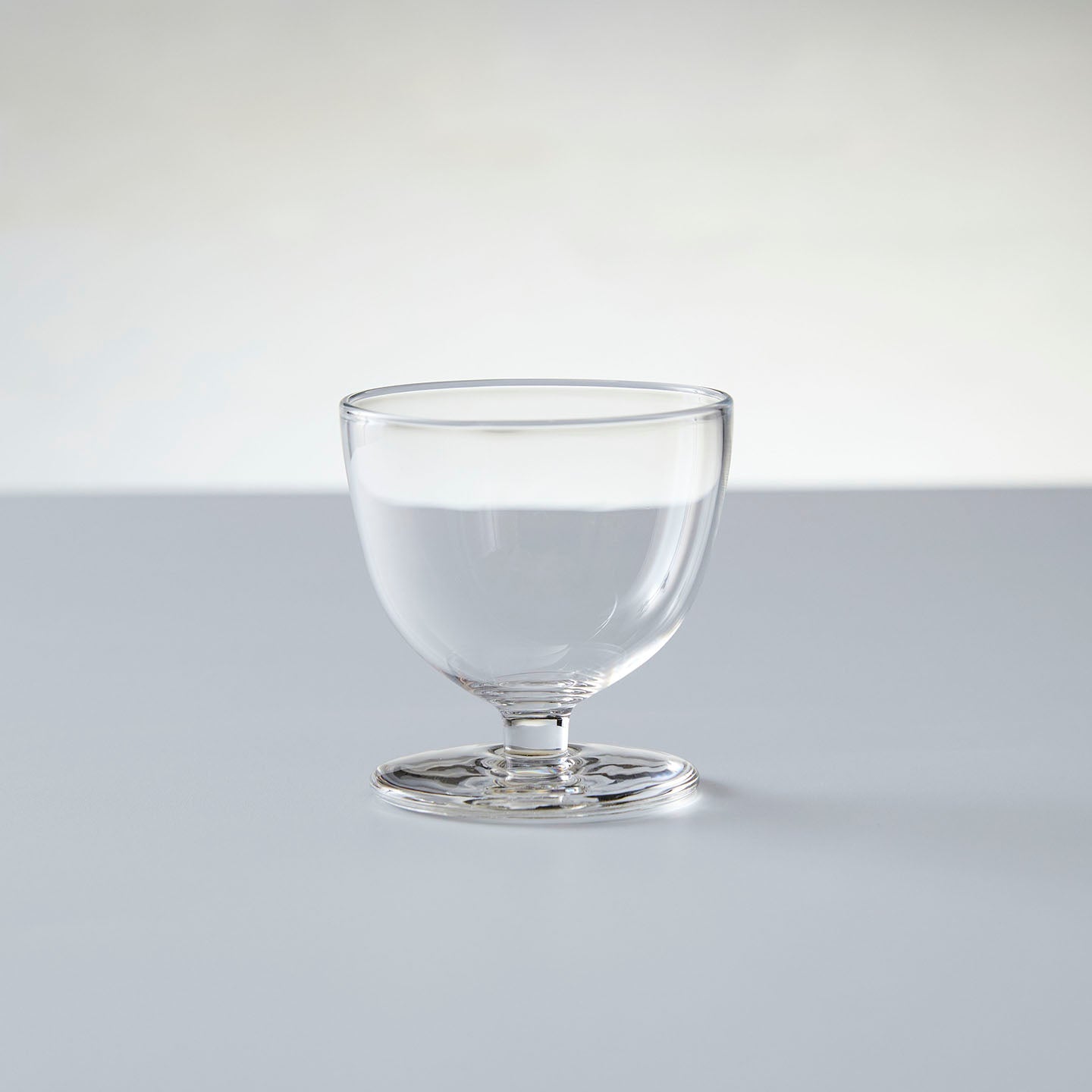 プクッとした形がかわいい脚付ミニグラス。オンラインストアで言うのもなんですが、見て、使ってみるとこのかわいさが分かります。