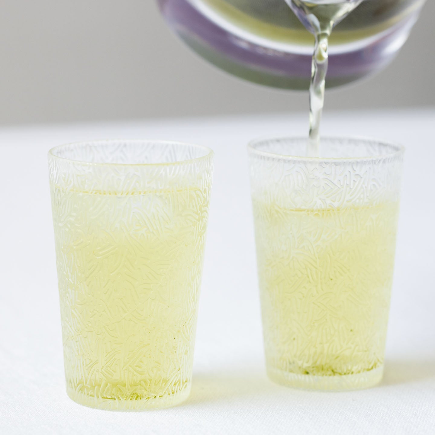 お茶を注ぐとハッとする景色が生まれて、グラスの中の飲み物に表情を与えてくれます。氷を入れて汗をかいたグラスもまた美しい。
