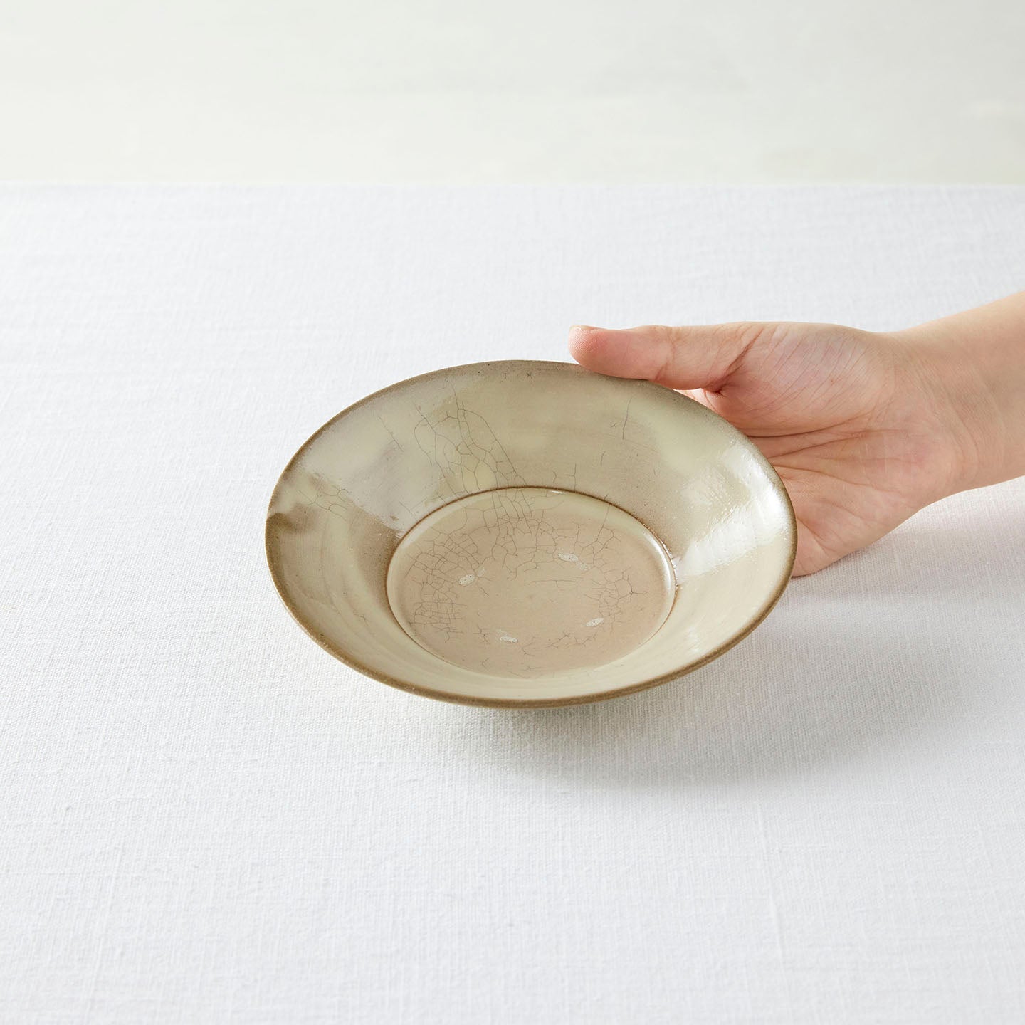 とても温かみのある色合い、手触り、見た目の質感です◯お客様へのお茶とお菓子の受け皿として、朝のフルーツを盛る器として、1人用のサラダ皿として、色々なシーンで使わせていただきます❁ご紹介くださりありがとうございました。