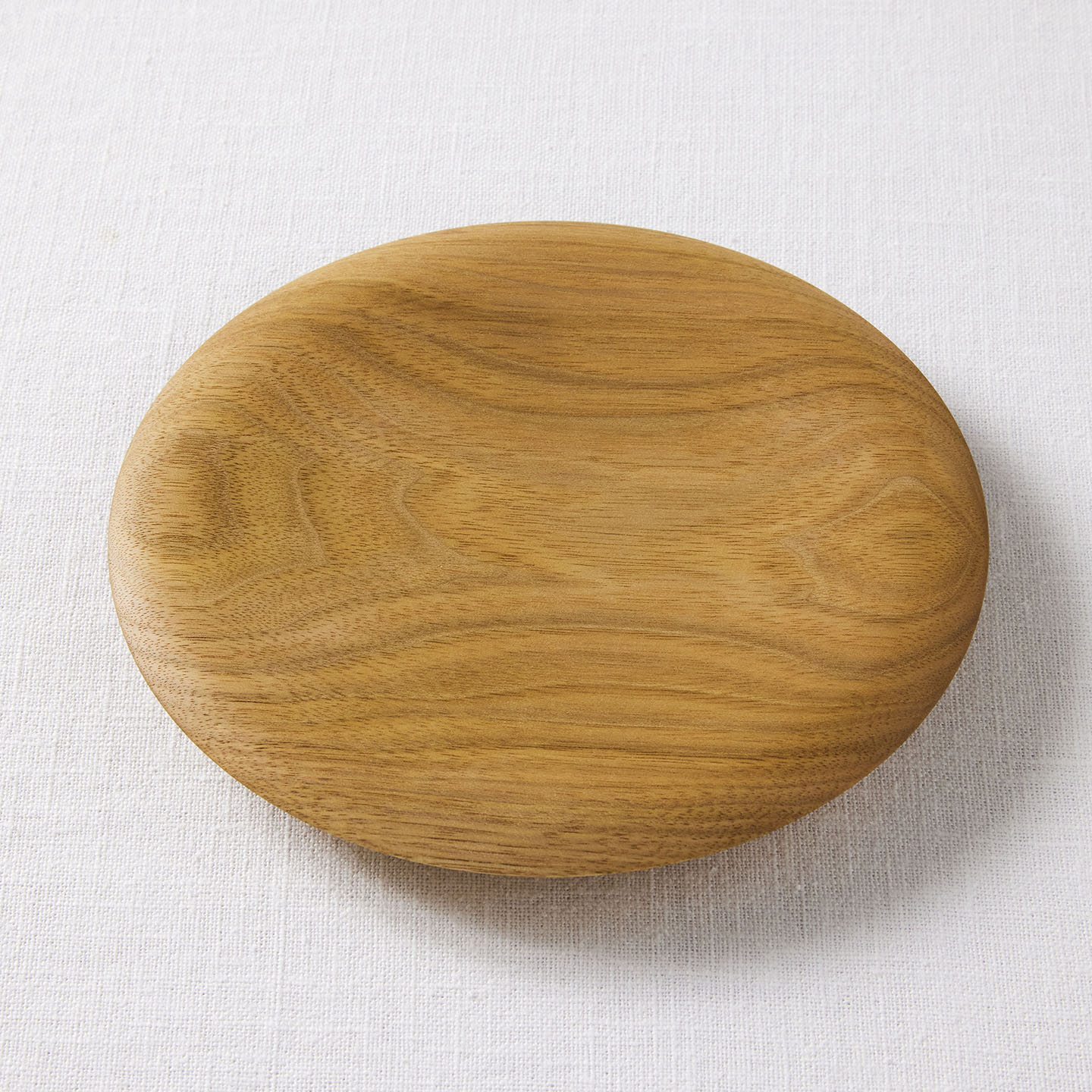その名のとおり、「パン木皿」はパンを盛りつけるのにぴったりな一枚。一つひとつ手作業で無垢のクルミの木から削り出した皿は、ぽってりとした厚みと、すべすべした手触りが特徴です。