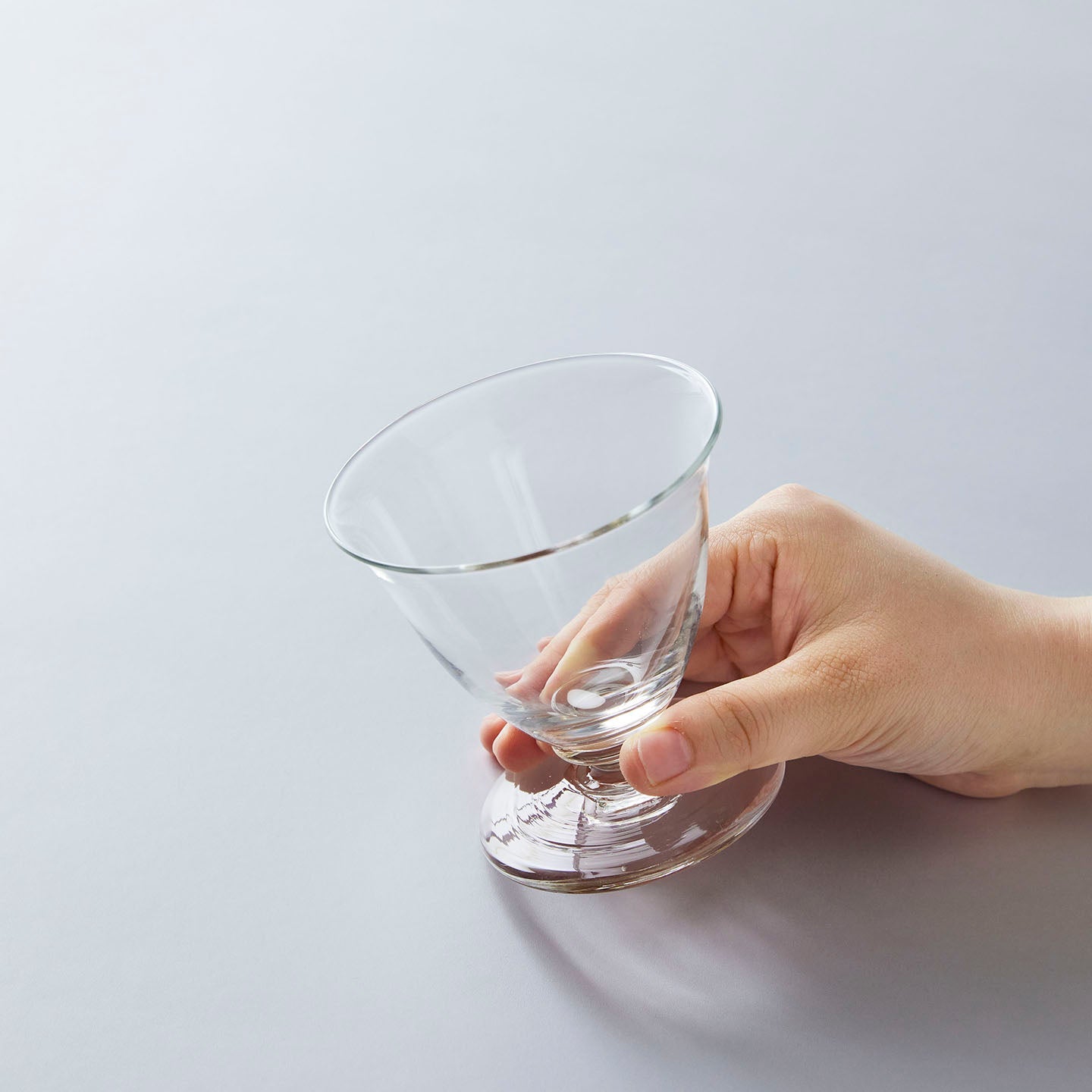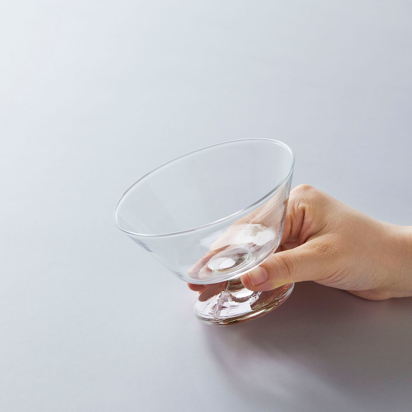 手吹きならではの揺らぎがありながらもクラフト感は控えめで、シャープで凛とした美しさも魅力。フルーツとクリームを交互に入れて、ミニパフェの器のように使っても愛らしいフォルムです。