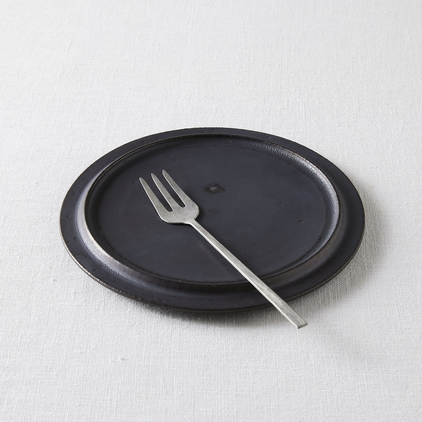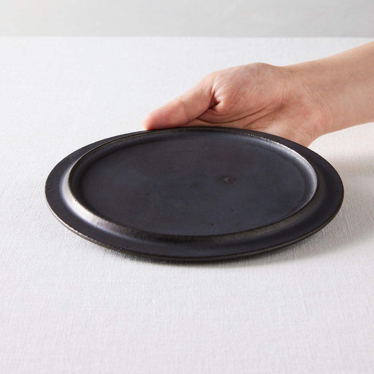普通、平皿のリムは立ち上がっているものですが、船串さんのプレートは逆に下がっているのが特徴的です。モダンなデザインですが、プリミティブにも感じる造形の不思議。どんな素材も包み込んでくれる懐の深さを感じます。」
