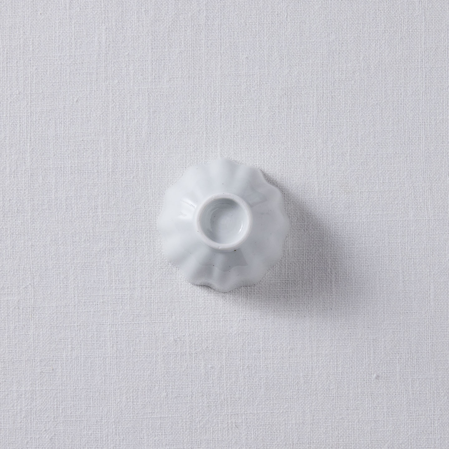 取っ手のないティーカップのようなデザインの「ティーボウル みぶ」。茶杯と一緒に並べたくなる、小ぶりなサイズです。透き通るような清潔感のある白い釉薬が、お茶の色も美しく見せてくれます。
