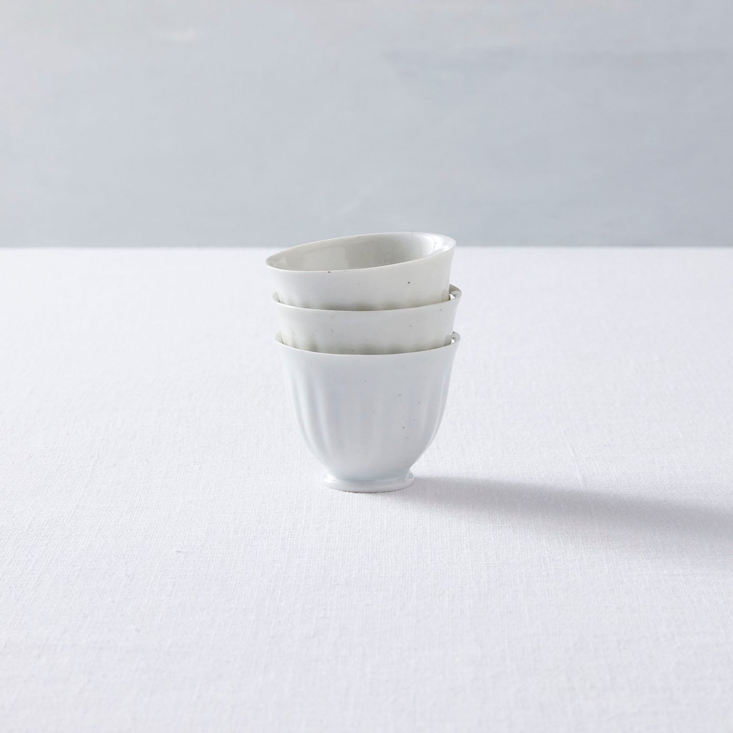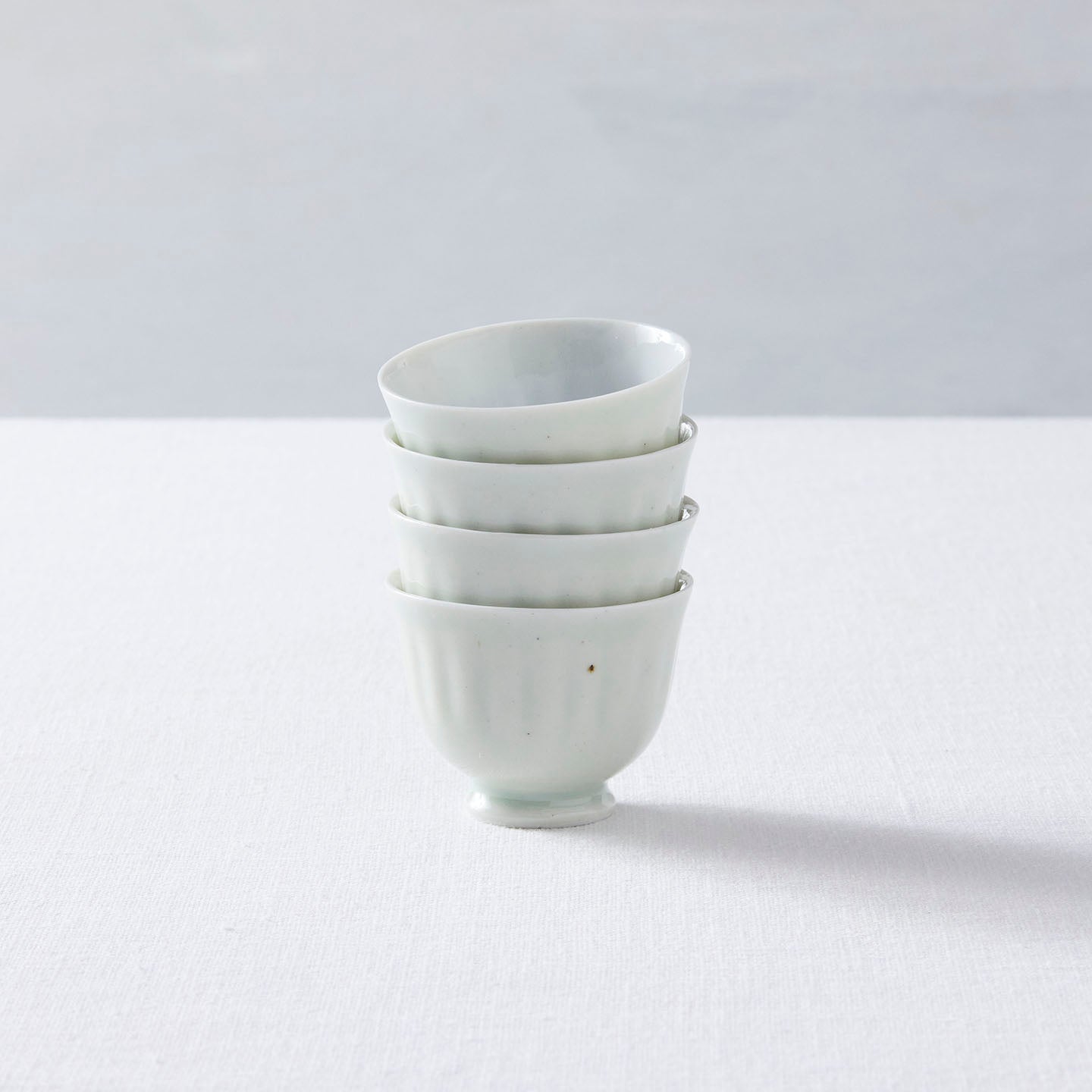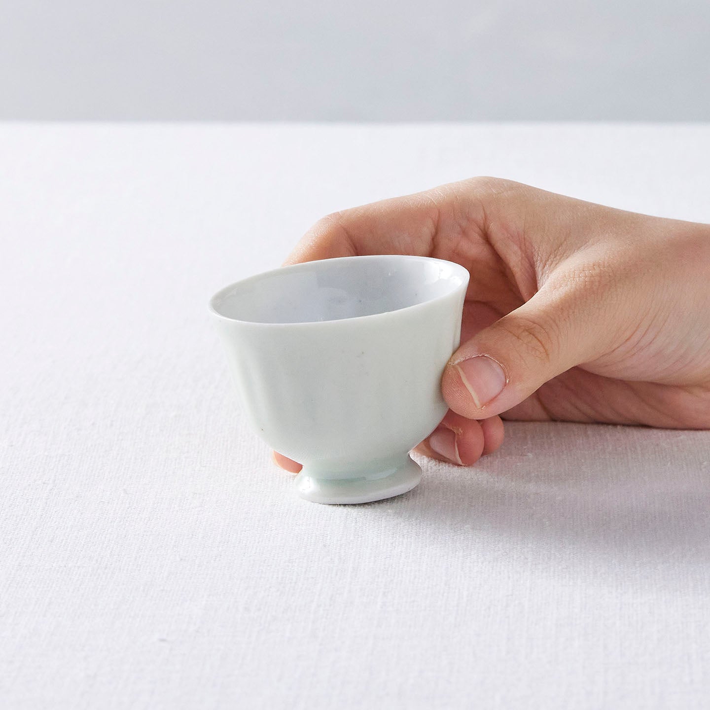 今回は、そんなEliuさんの作品のなかから「茶杯輪花(大)」青磁、白磁のそれぞれををご紹介します。