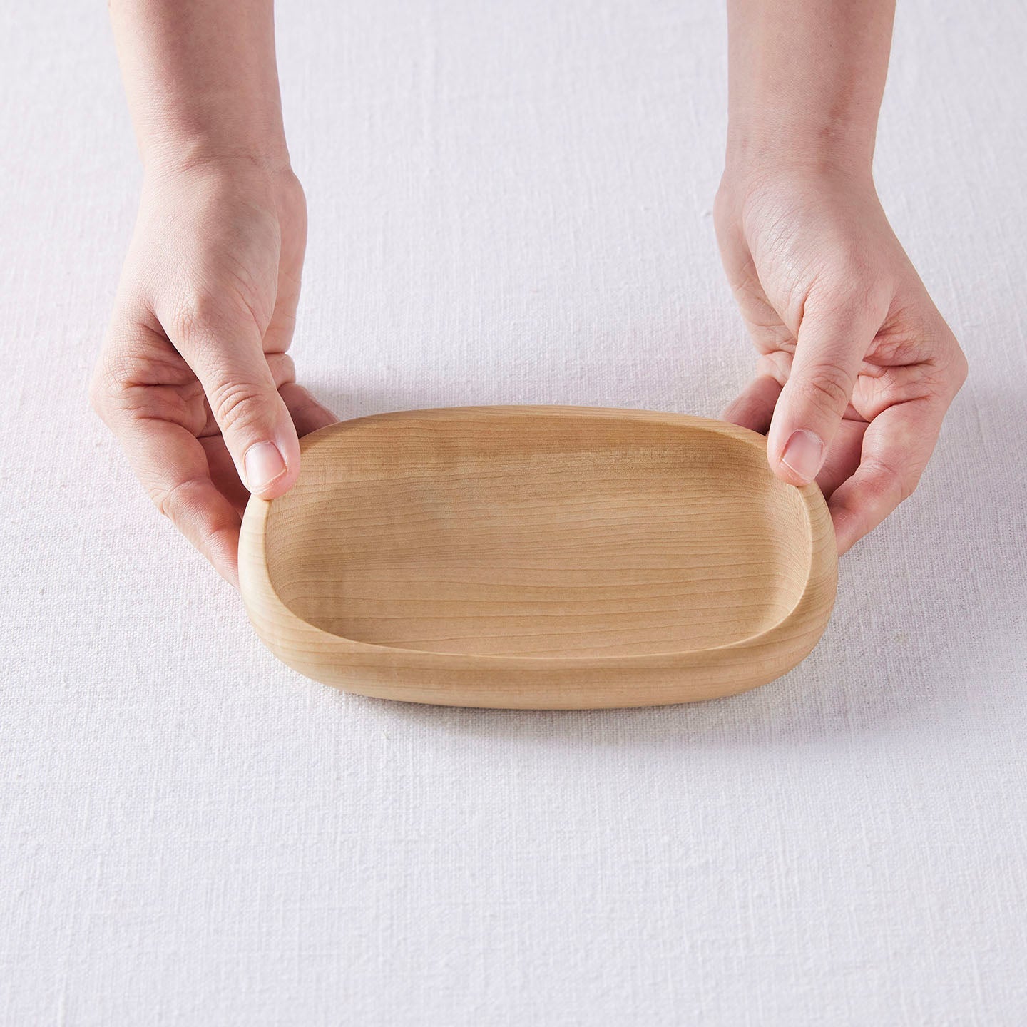 すべすべとした心地よい手触りの「帯ノコのコ」は、トチの木を削りだして生まれたモダンなお盆。洋の雰囲気も持ち合わせていて、トレーと呼んでもよさそうです。