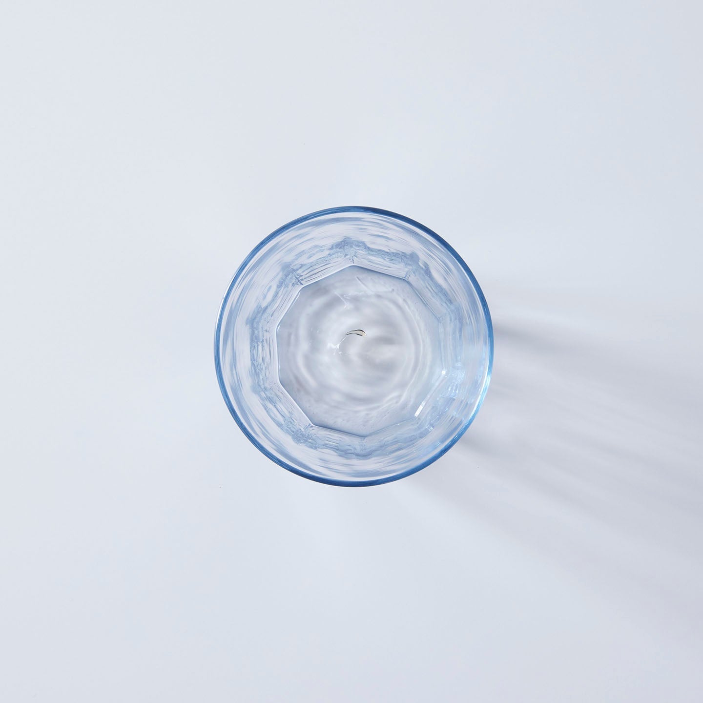 小宮さんの作るこの「十角グラス」は、置かれた立ち姿も美しい。湖の水面のような揺らぎは、眺めていると心が落ち着いていくよう。少し厚めに作られた底にも注目です。