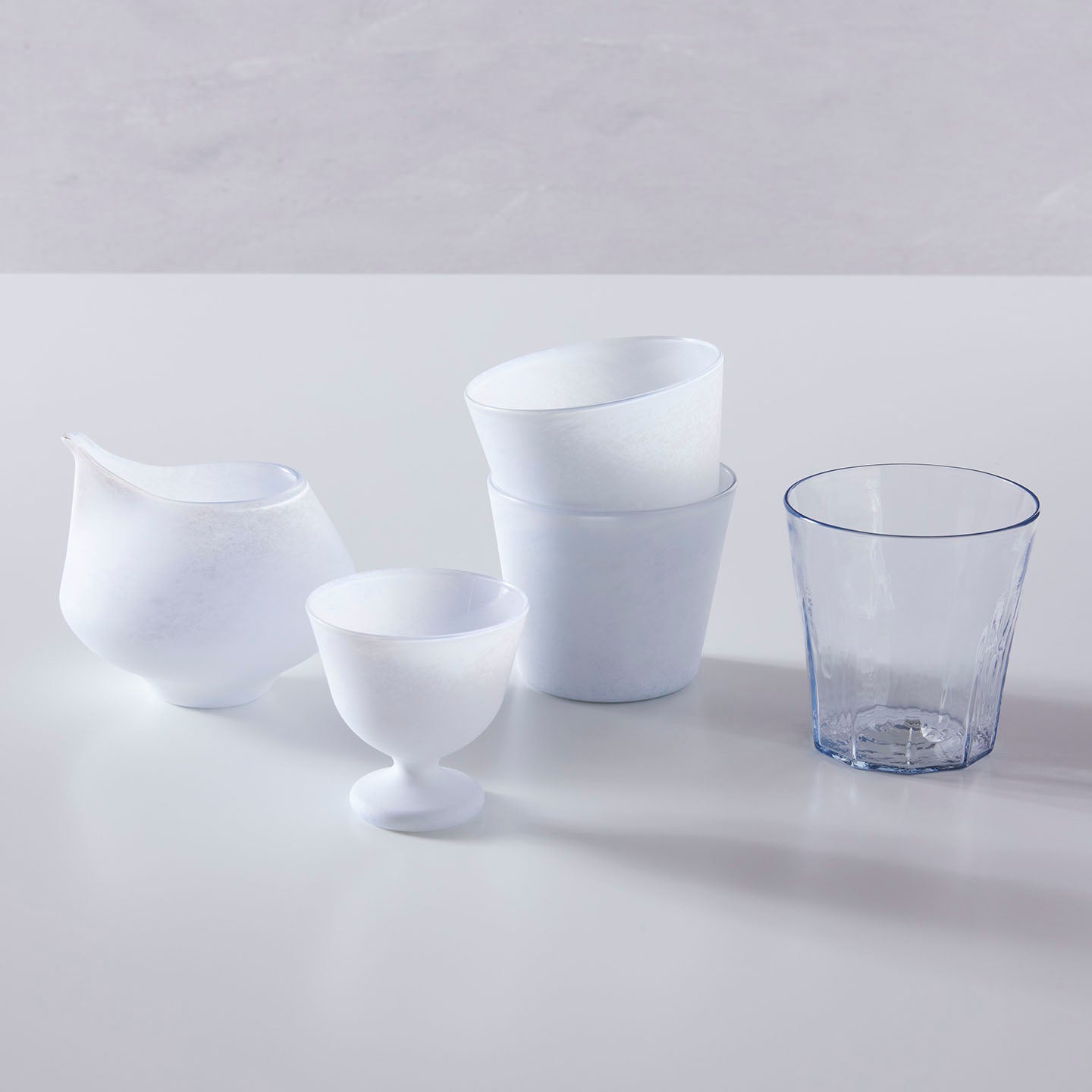 今回取り扱う、ゆらぎのある「十角グラス」と乳白色の「白のうつわ」は、異なる質感の器ですが、組み合わせて使っても食卓が華やぎそうです。どのように使ってほしいか、小宮さんの思いを聞かせてください。
