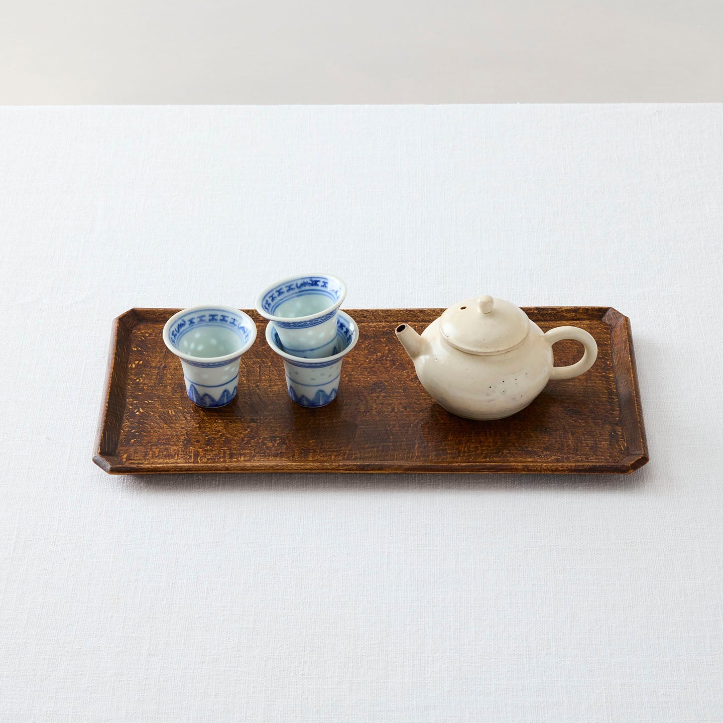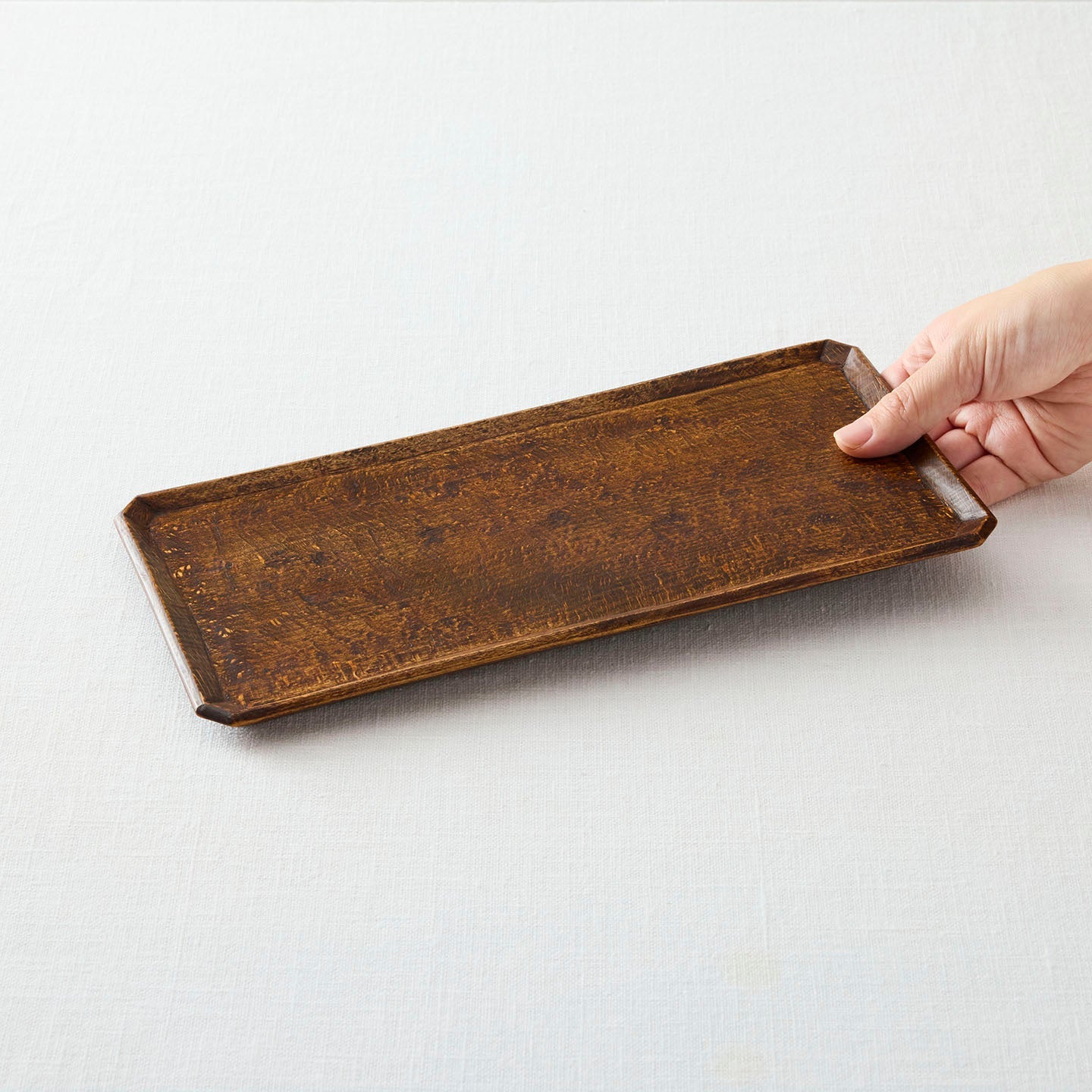 今回、煎茶堂東京の希望で作っていただいたサイズの「隅切長盆」。この木はブナの素材を使って作られているのですが、木の生命力を感じずにはいられない表情が魅力的です。