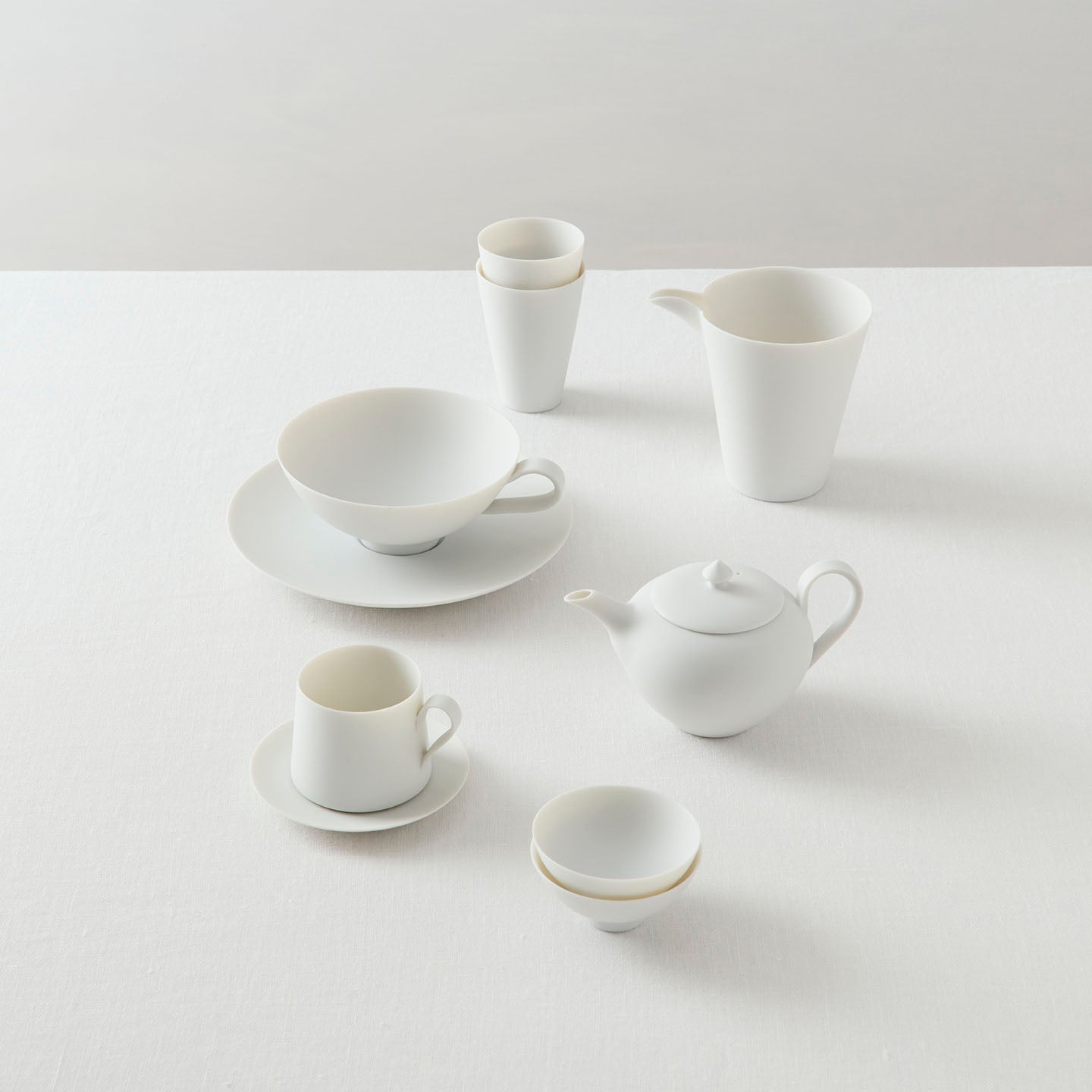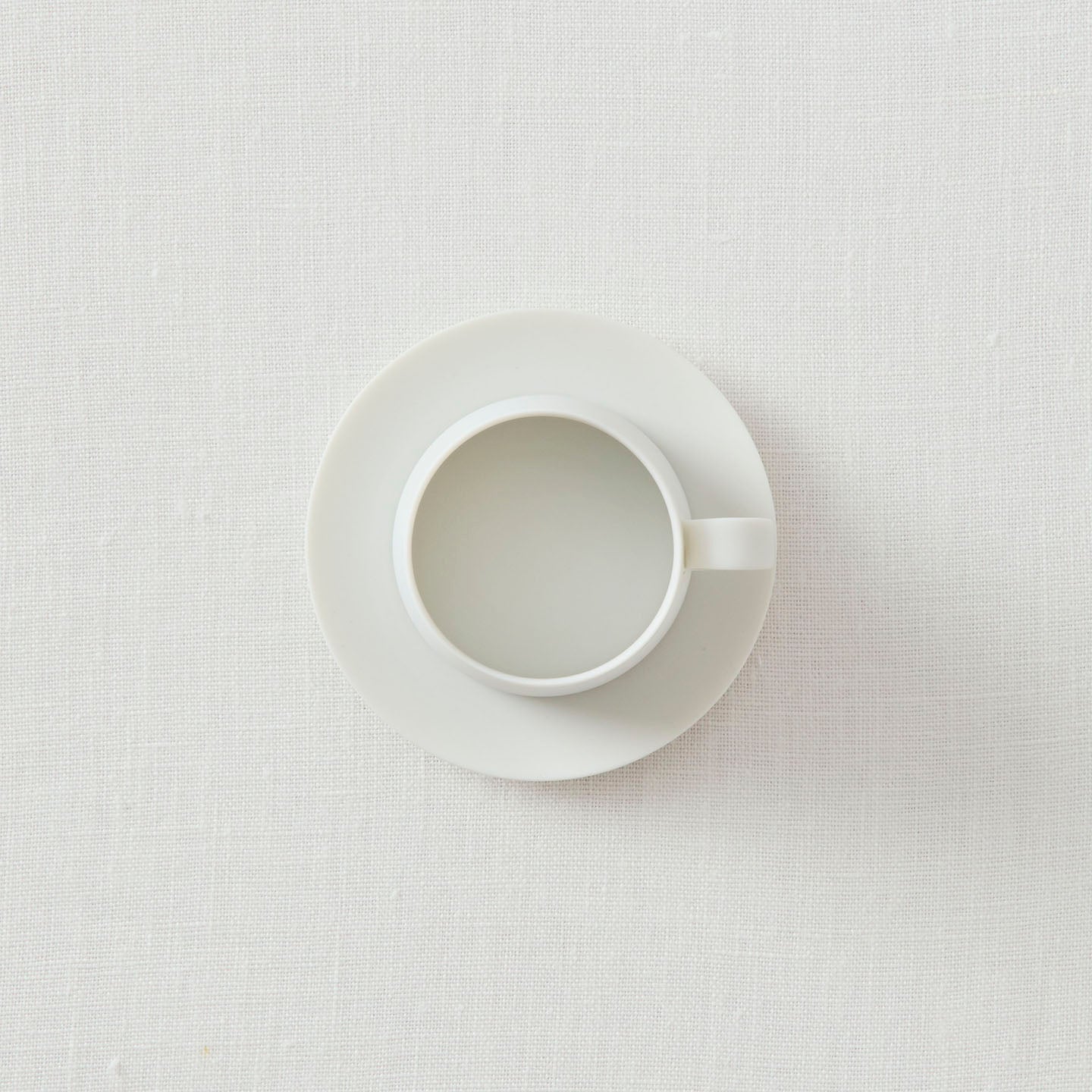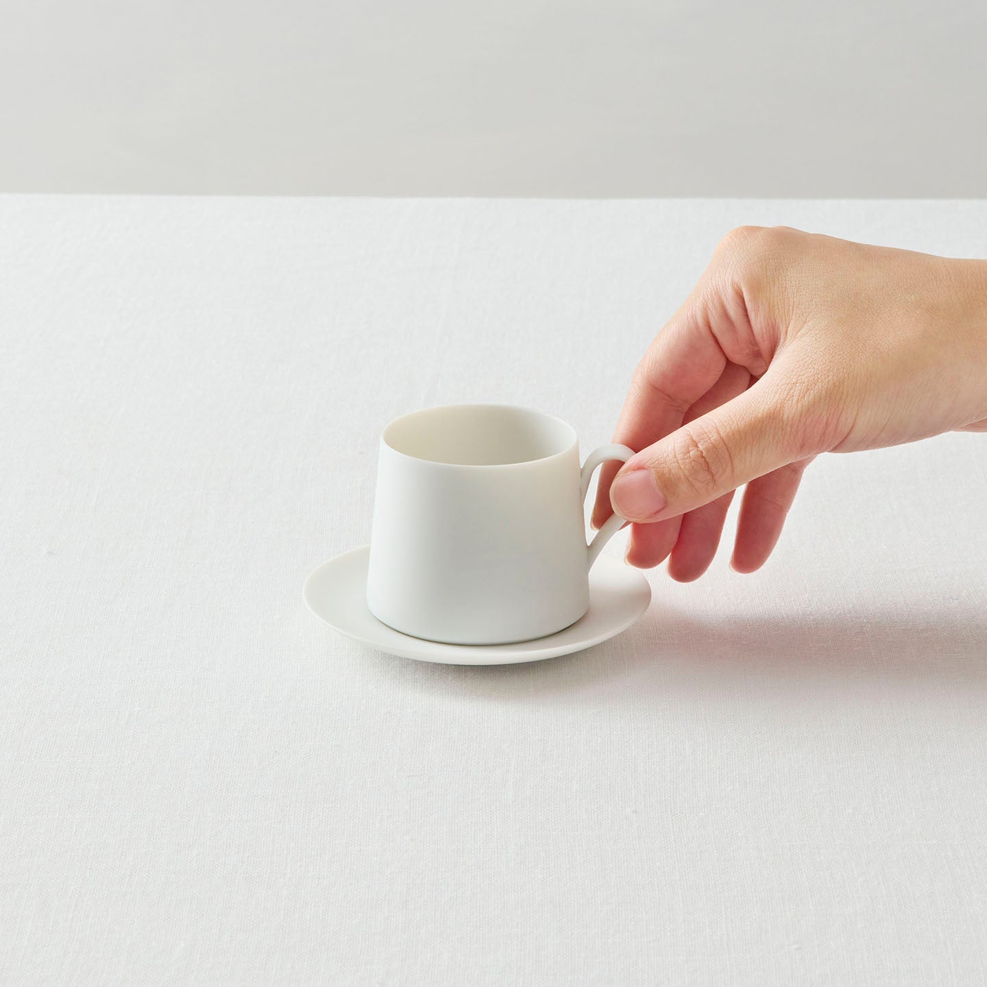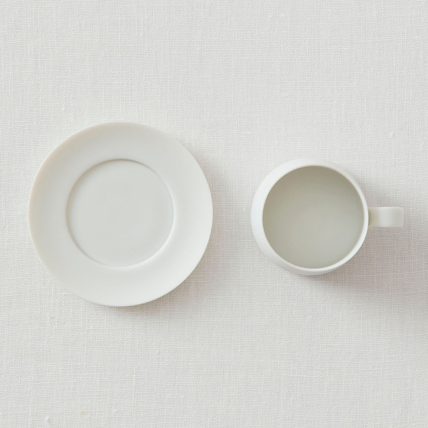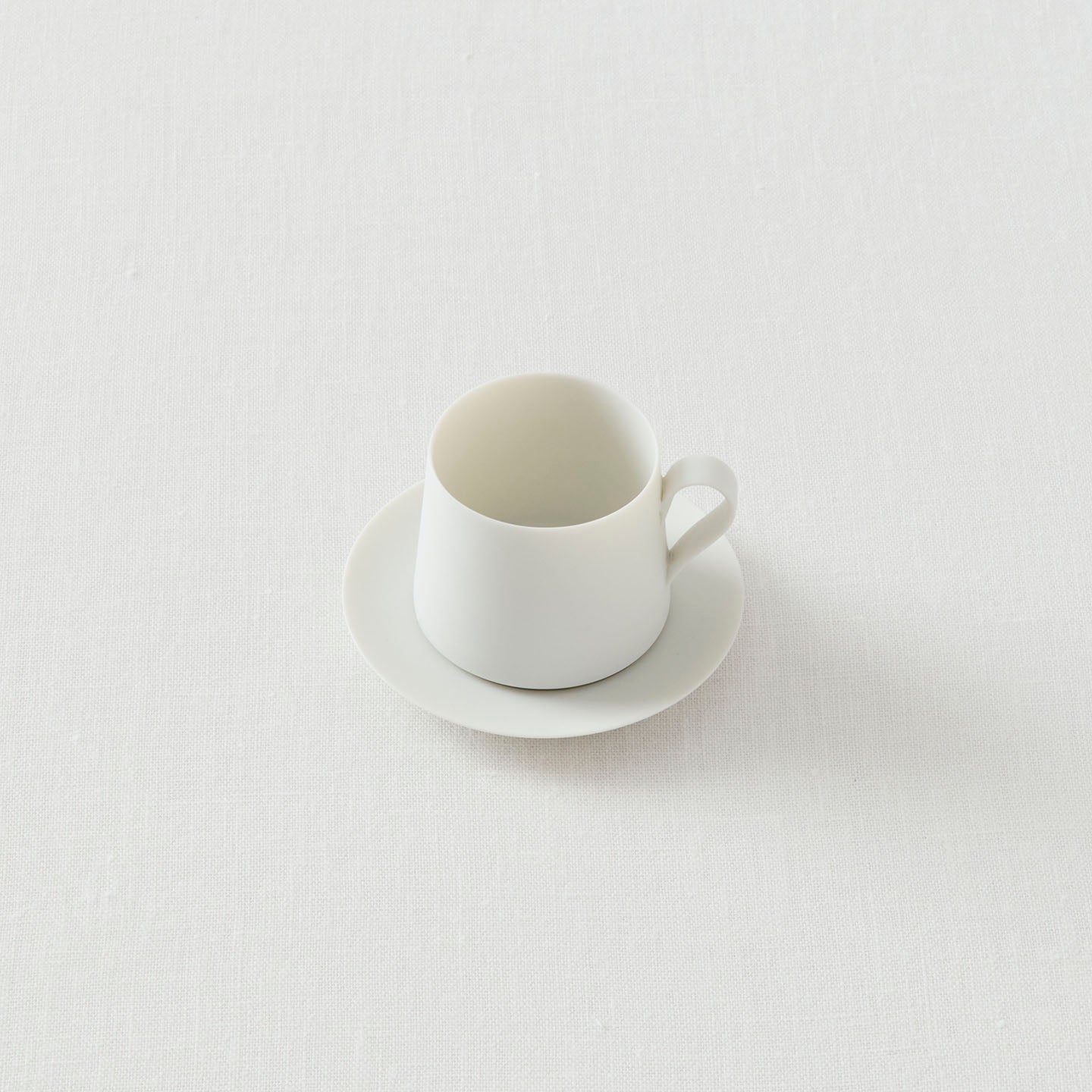 白磁の凛とした佇まいと、なめらかな質感が魅力的な森岡さんの作品から、今回は「デミタスカップ&ソーサー」をご紹介します。