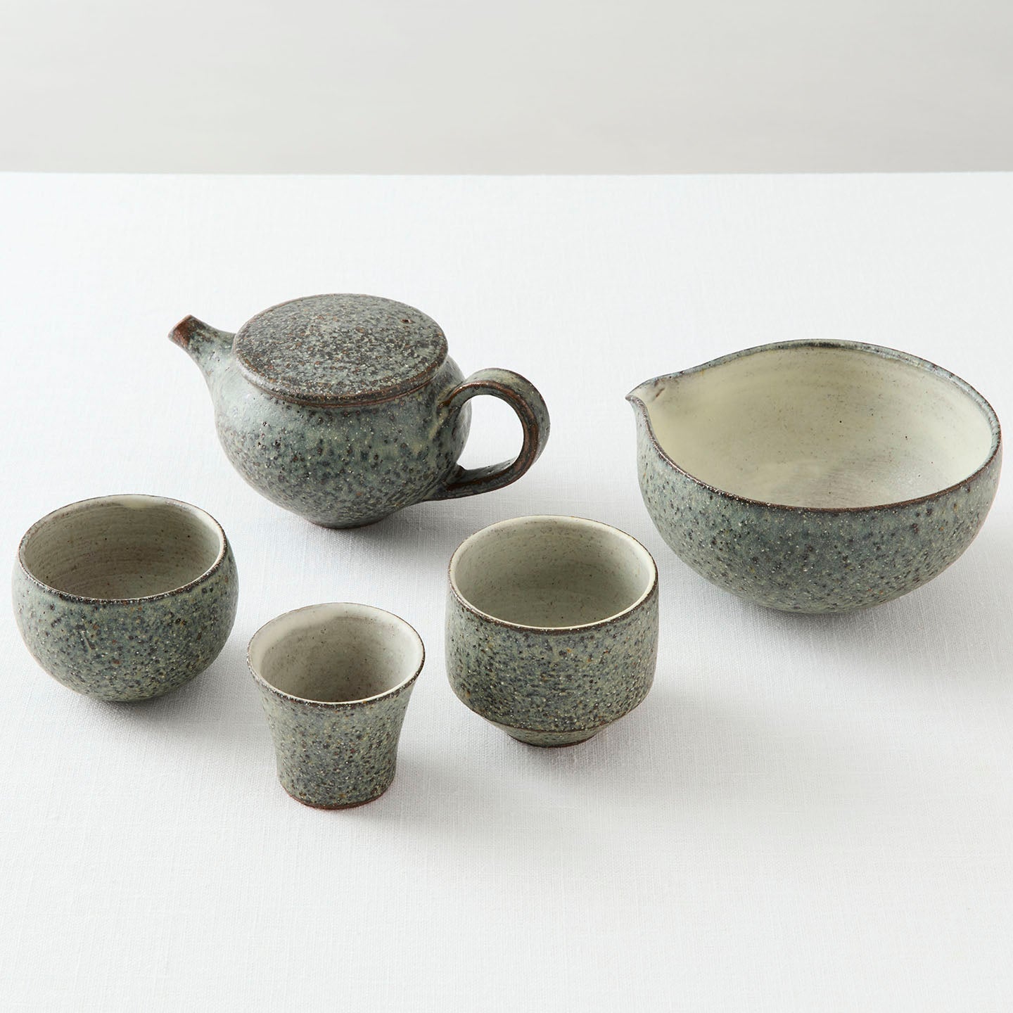 深みのあるグリーングレーのカラーの器のことを、飯高さんは「おじぞうシリーズ」と呼んでいます。土物の温かみがありながら、石にも似たような質感もあり、その名がついたのもなるほどのルックス。