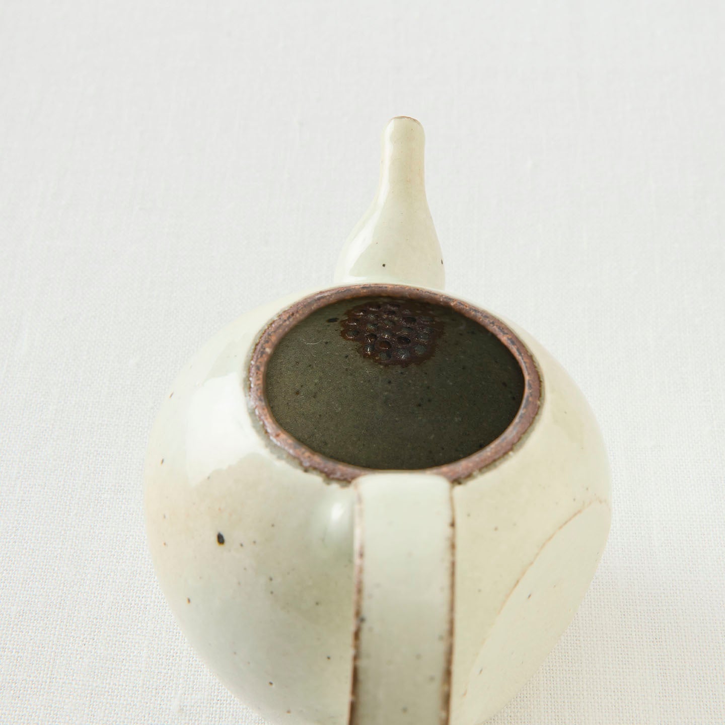 淡海陶芸研究所の草津焼の作品から、白泥(はくでい)と呼ばれるシリーズの「白泥糸切ティーポット」をご紹介します。