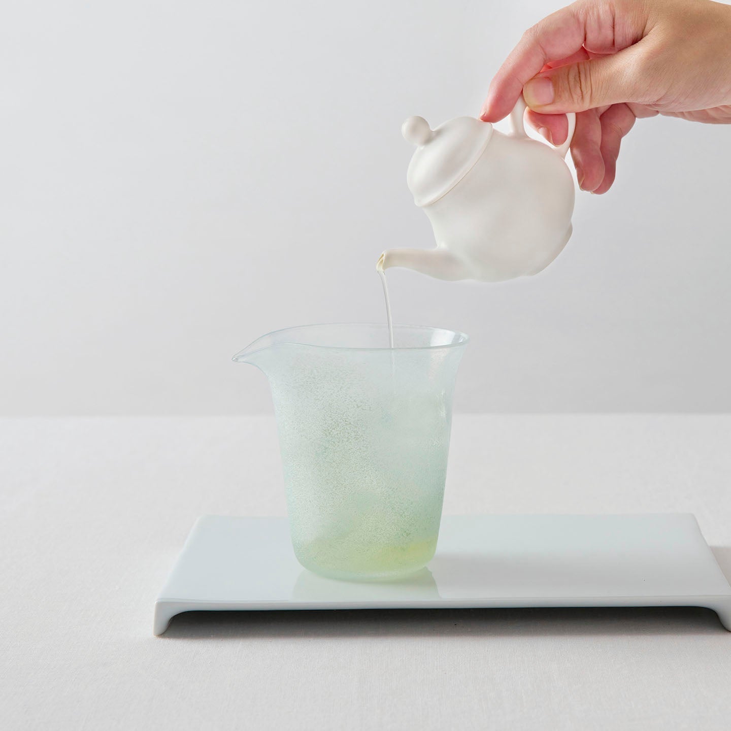 「うたかた」と名付けられたシリーズの「片口」。「うたかた」は、水面に浮かぶ泡や、儚く消えやすいものを表す言葉で、まさに表面に振りかけられたガラスの粒たちがいちばん美しい瞬間を切り取った作品のように見えます。