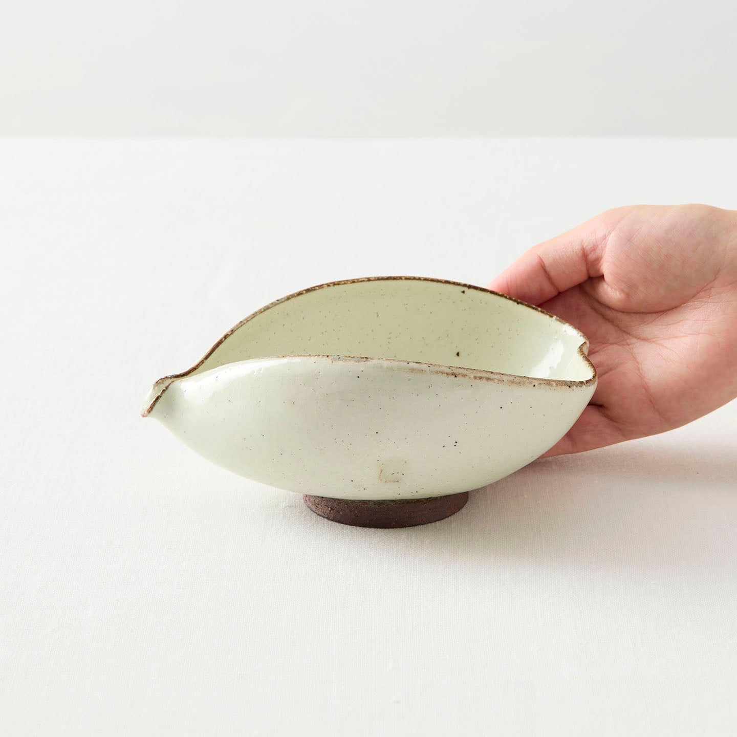 淡海陶芸研究所の草津焼の作品から、白泥(はくでい)と呼ばれるシリーズの「白泥片口」をご紹介します。