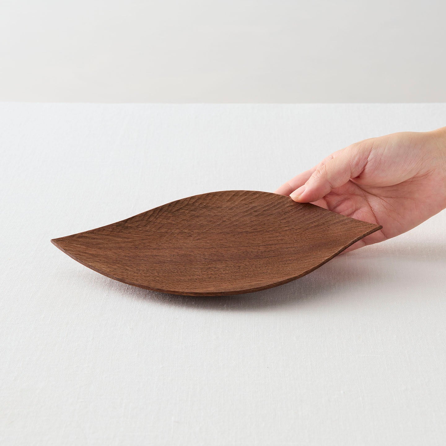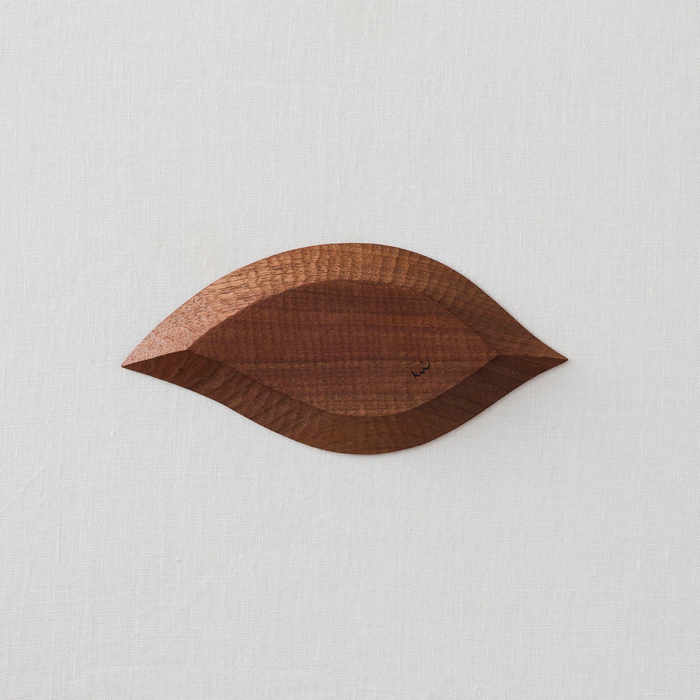 葉脈のように流れる繊細な彫り跡に目を奪われる「木の葉」。素朴で優しい木のぬくもりと、生命力が感じられます。