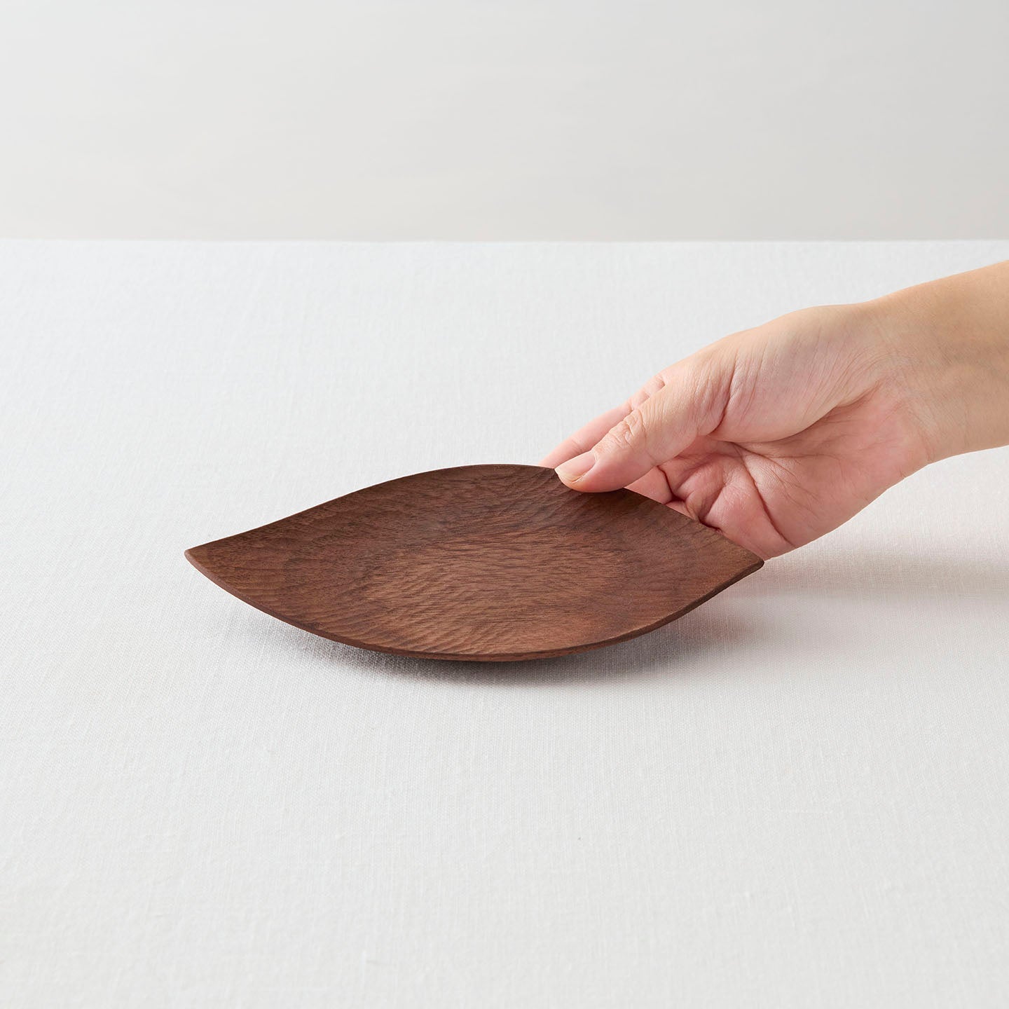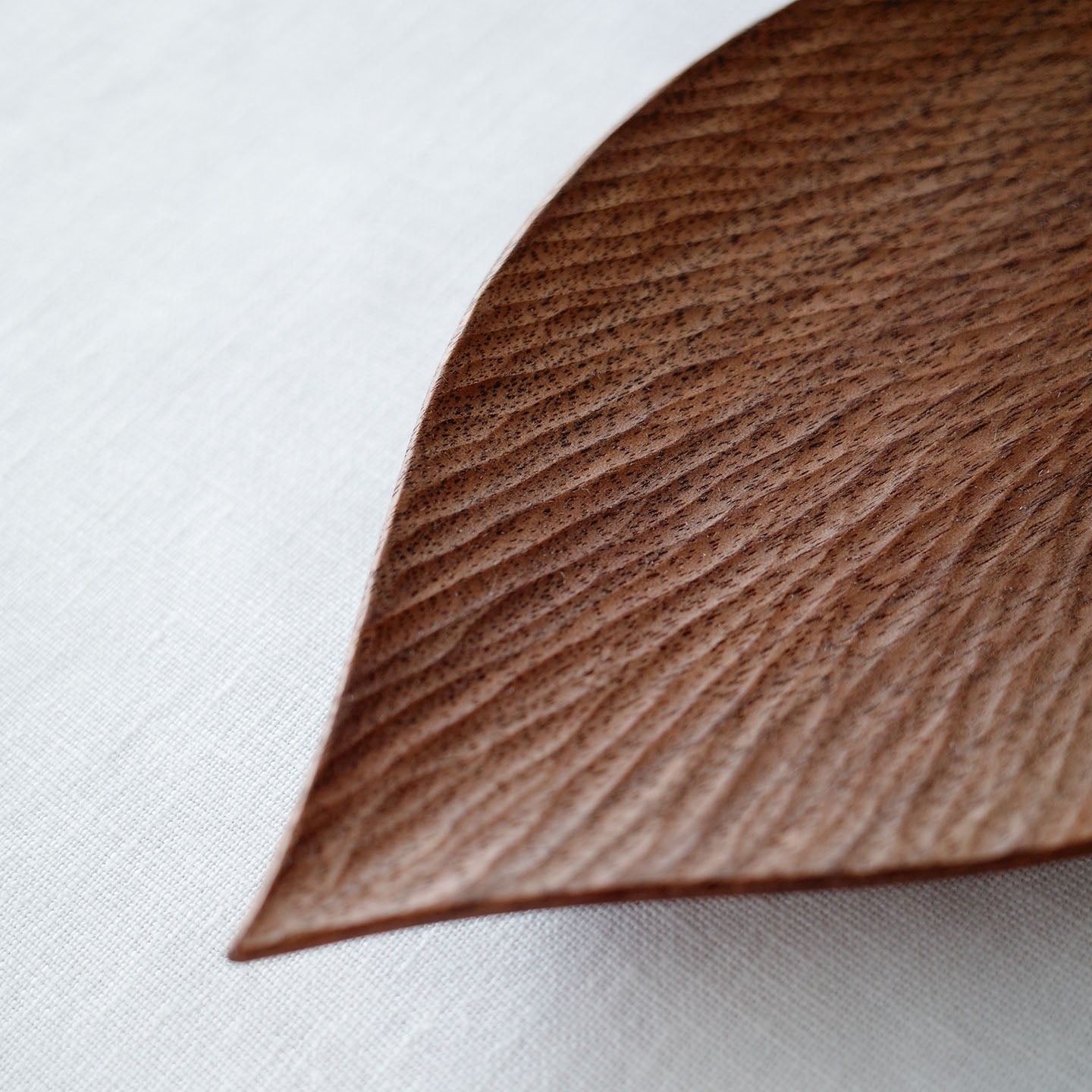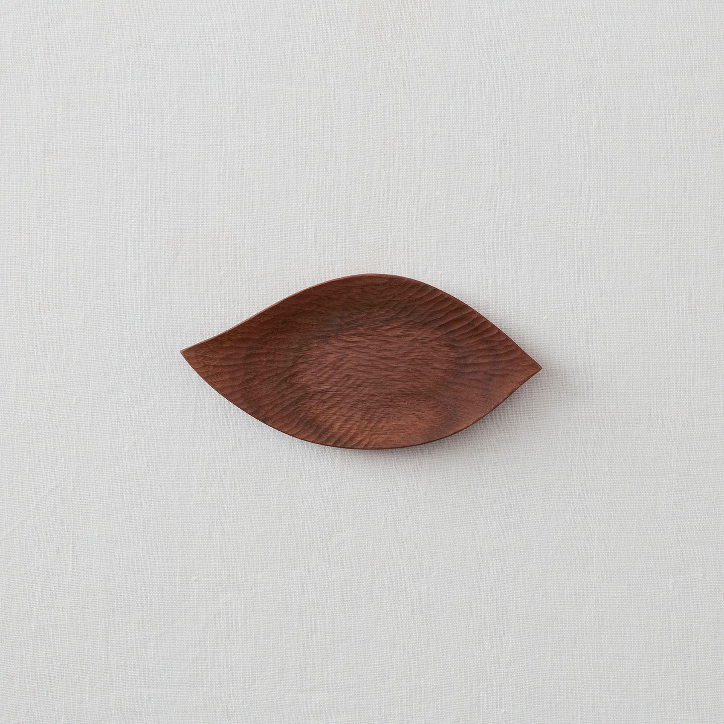 葉脈のように流れる繊細な彫り跡に目を奪われる「木の葉 茶托」。素朴で優しい木のぬくもりと、生命力が感じられます。