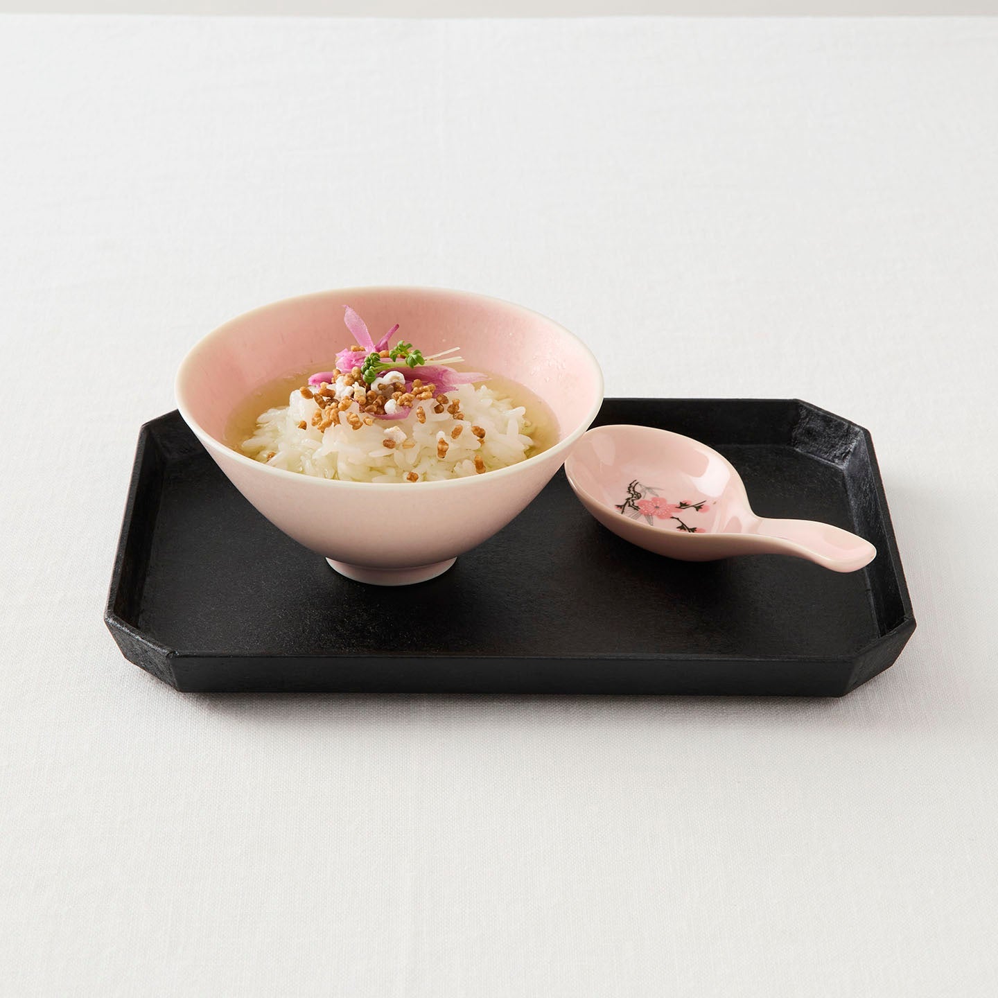 しかも、一切の装飾を排除することにより、陶磁器やガラス、金属などの異なる素材と合わせたとき、引き立て役に徹するのも組み合わせの妙です。和紙のテクスチャを生かした、漆塗りの折敷や盆、トレーが裏方の主役と言わんばかりに活躍します。