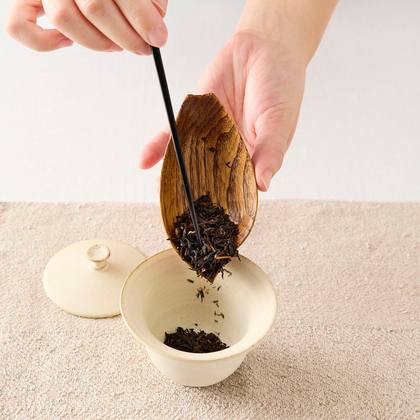 中国茶において、茶葉を茶壷に移すときに使われる「茶則」。茶葉の量を見るために使ったり、茶葉の状態を鑑賞したりと、お茶時間を豊かにしてくれる道具のひとつです。