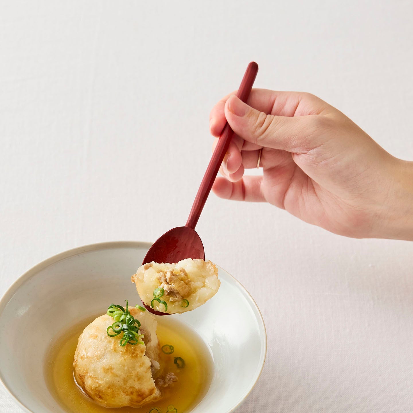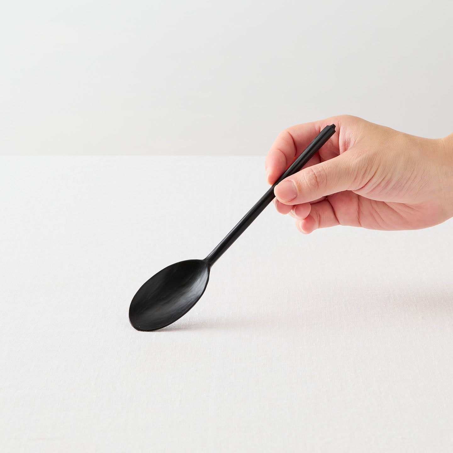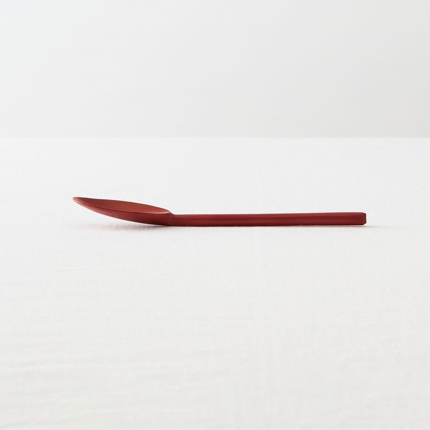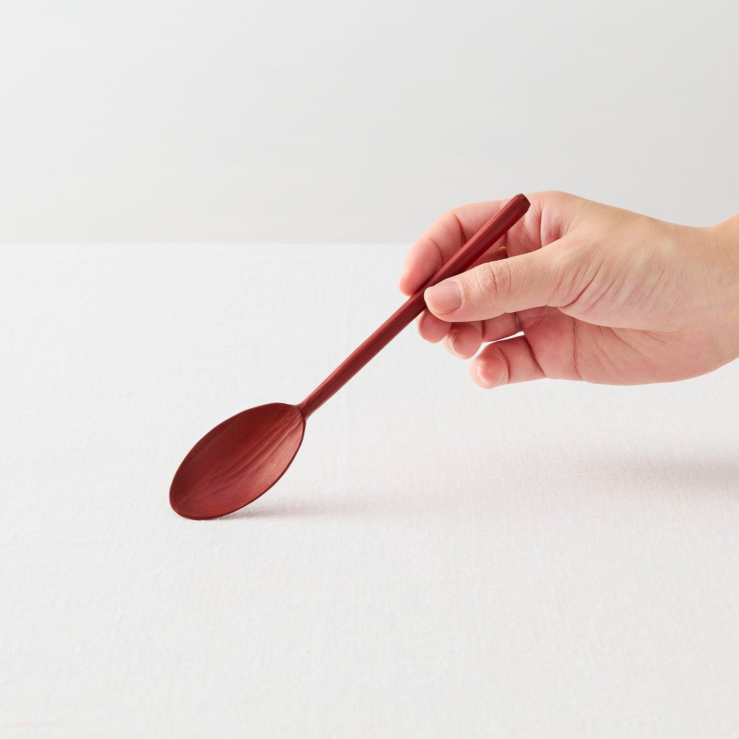 漆というと艶やかな光沢を思い浮かべがちですが、山田さんが手がける「円柱匙」はマットな質感。それだけで、漆を特別な日だけのものではなく、日常的に使いたくなりませんか。