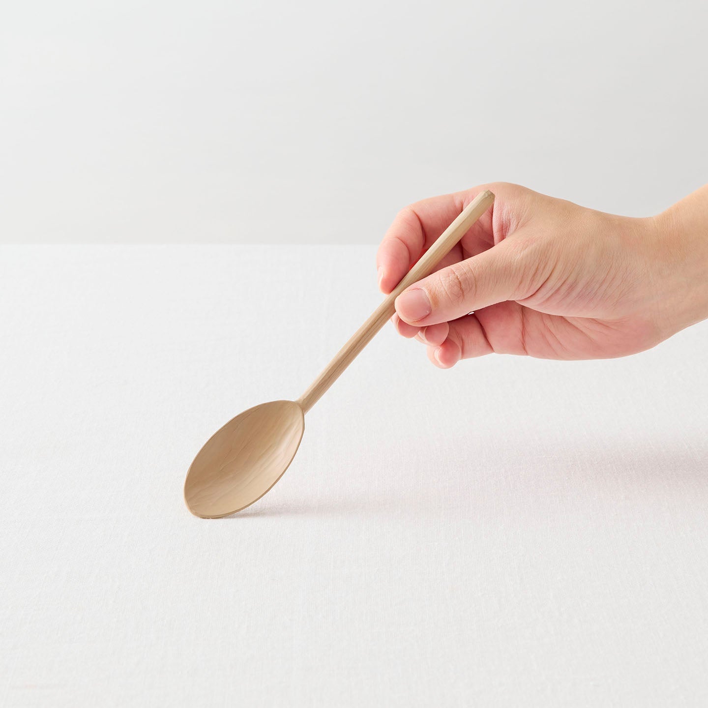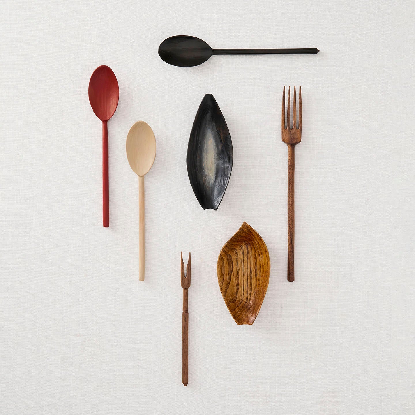 木製のカトラリーで食べると、油が染みてしまうのでは? と心配になるかもしれません。でも、山田さんは「意図的に油を使った料理を食べてほしい」といいます。木が油分を吸収することで、表面を保護してくれる役割を担ってくれるのだそう。日常的に使うことがメンテナンスになり、よりよい経年変化を生み出してくれます。