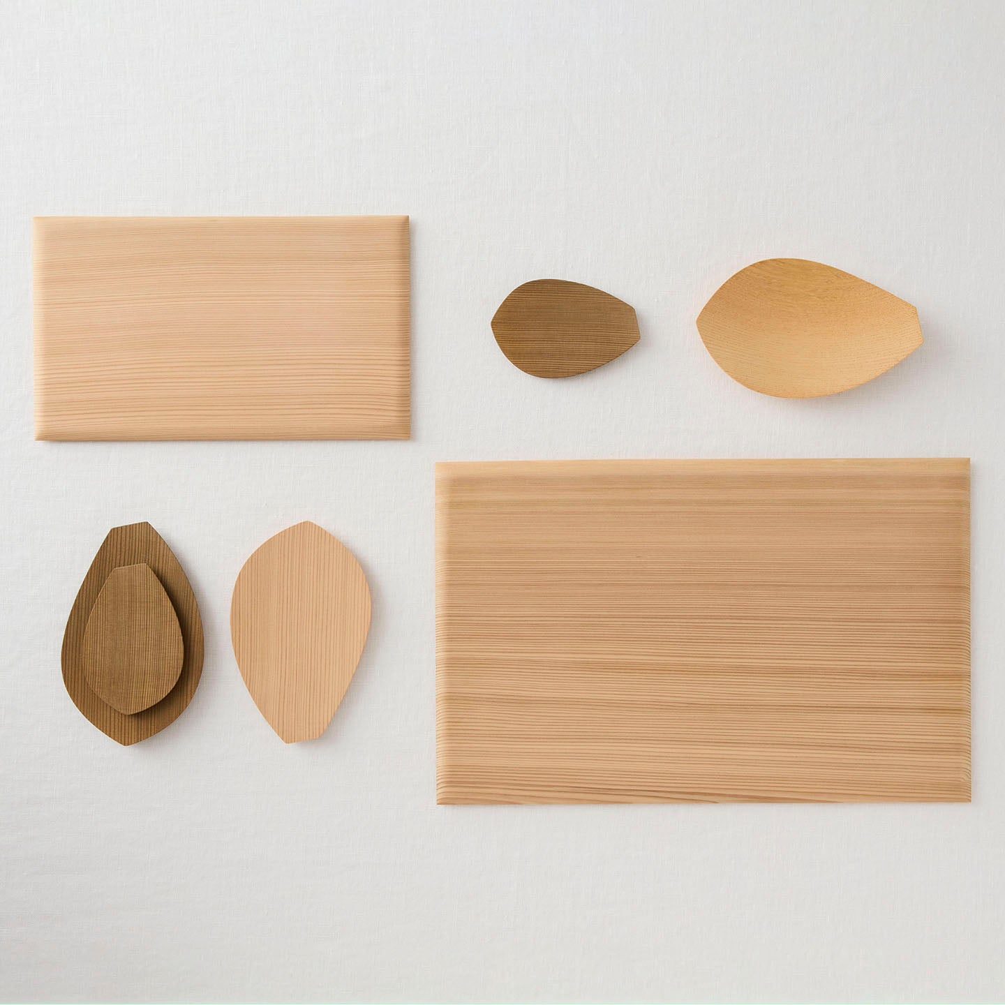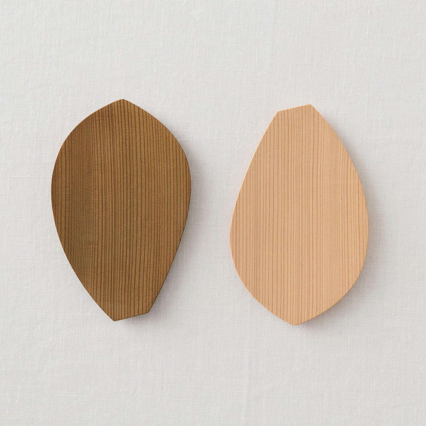 蓮の花びらをかたどった「蓮弁皿」。杉が魅せる穏やかな木目が、ぬくもりを感じさせてくれます。