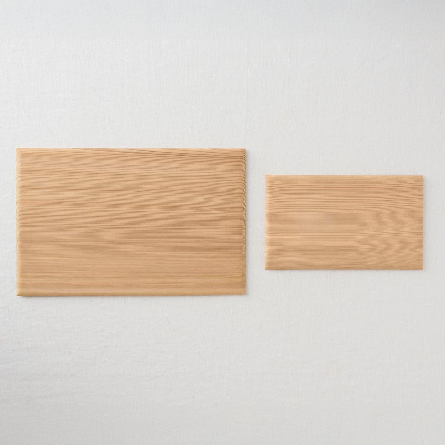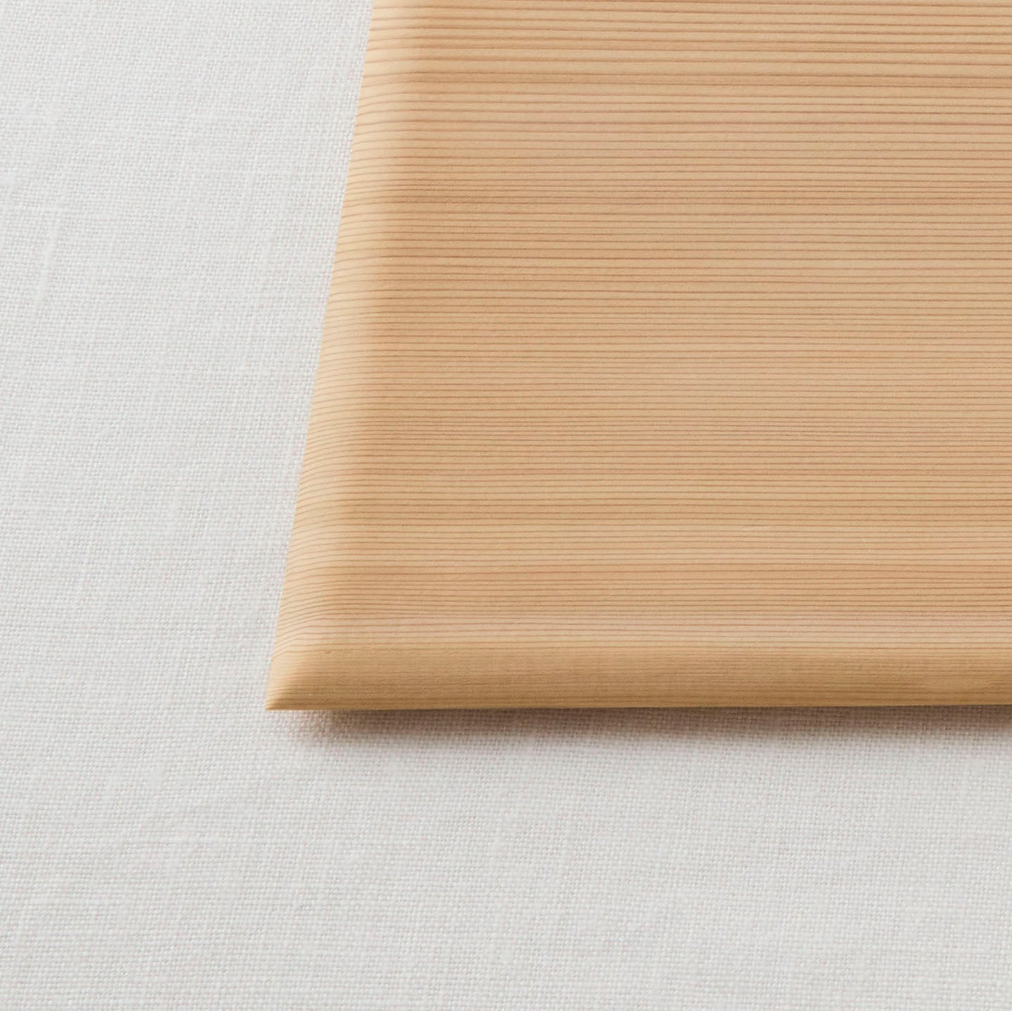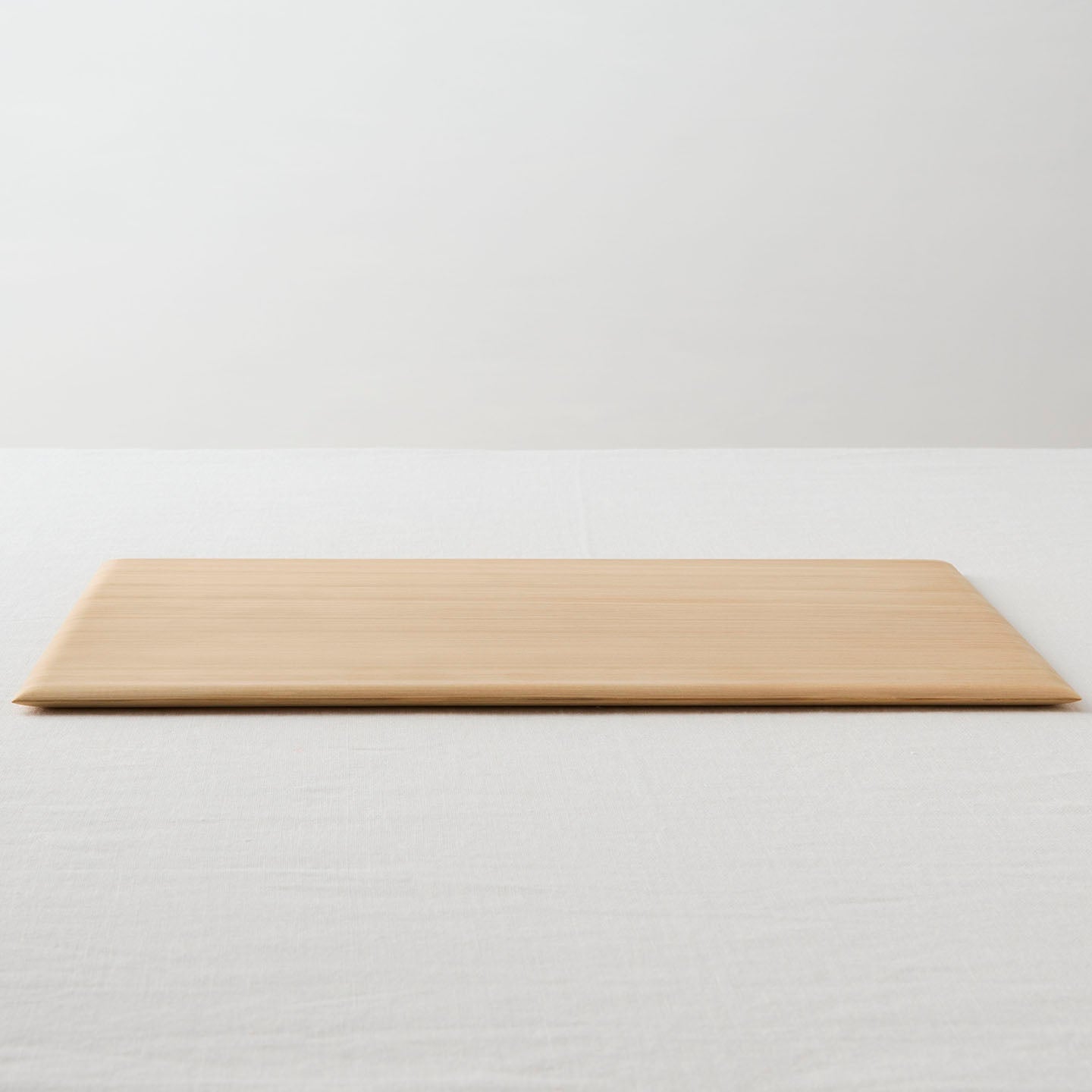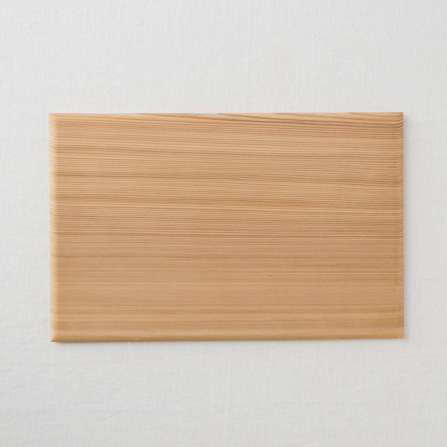 機械を使わず、手の道具だけで丁寧に削り出された「敷板」。無垢の杉がふんわりと香り、思わず深呼吸をしたくなります。シンプルなかたちのなかに、ゆるやかな曲線の美しさがあり、見とれてしまうほどです。