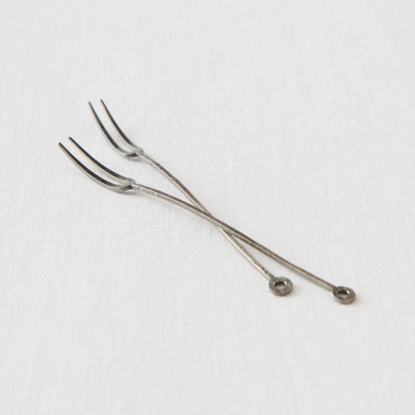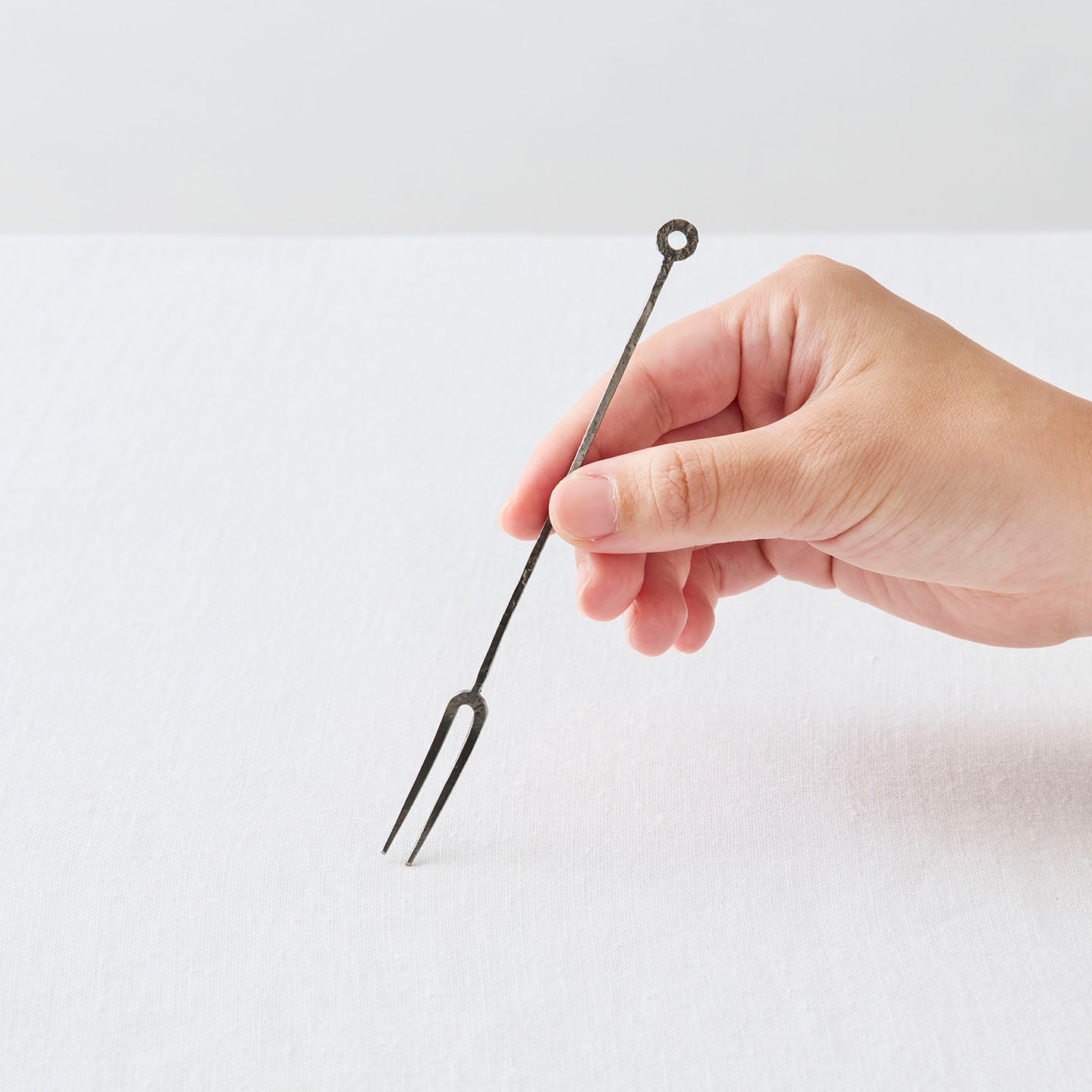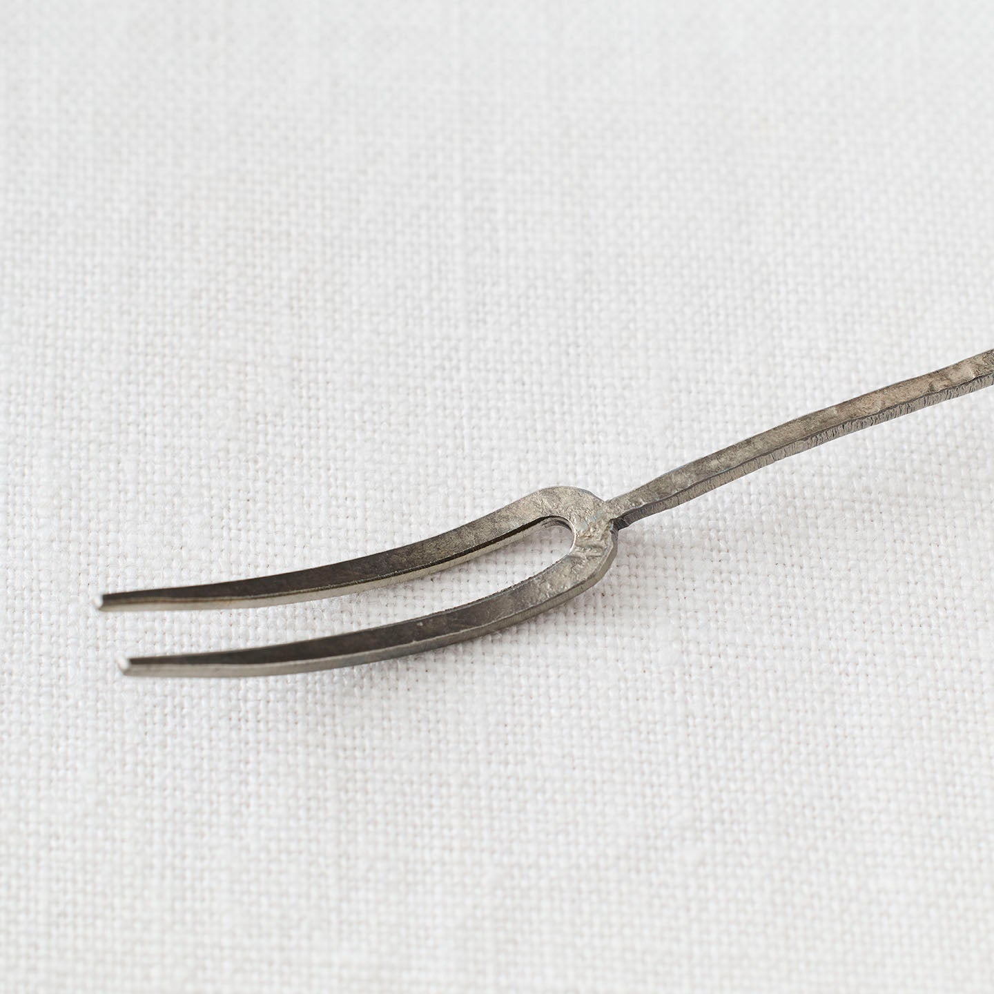 鋭さと静けさが漂う「ふたまた」。カトラリーでありながら、その繊細な佇まいは「線」のような存在感をまとい、お皿にそっと添えた姿が絵になります。わずかな歪みや表面の陰影は、どれひとつとして同じものはありません。