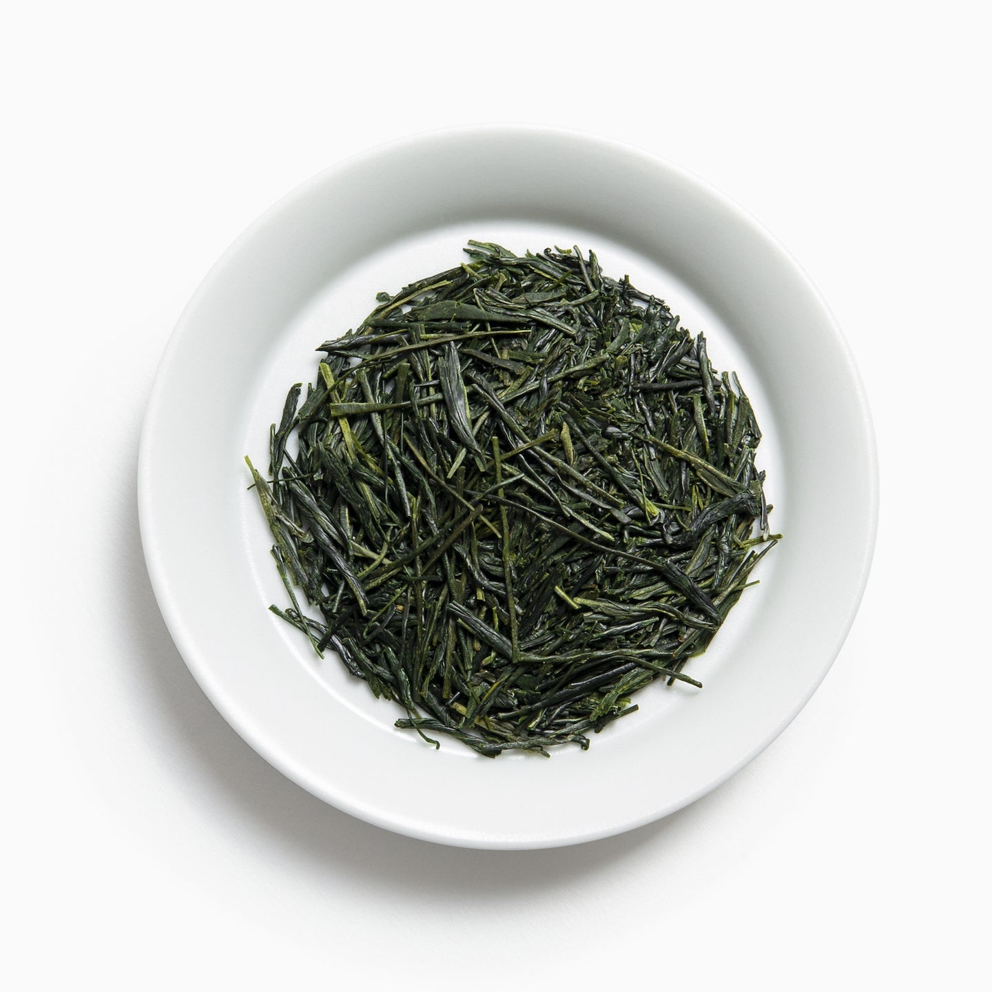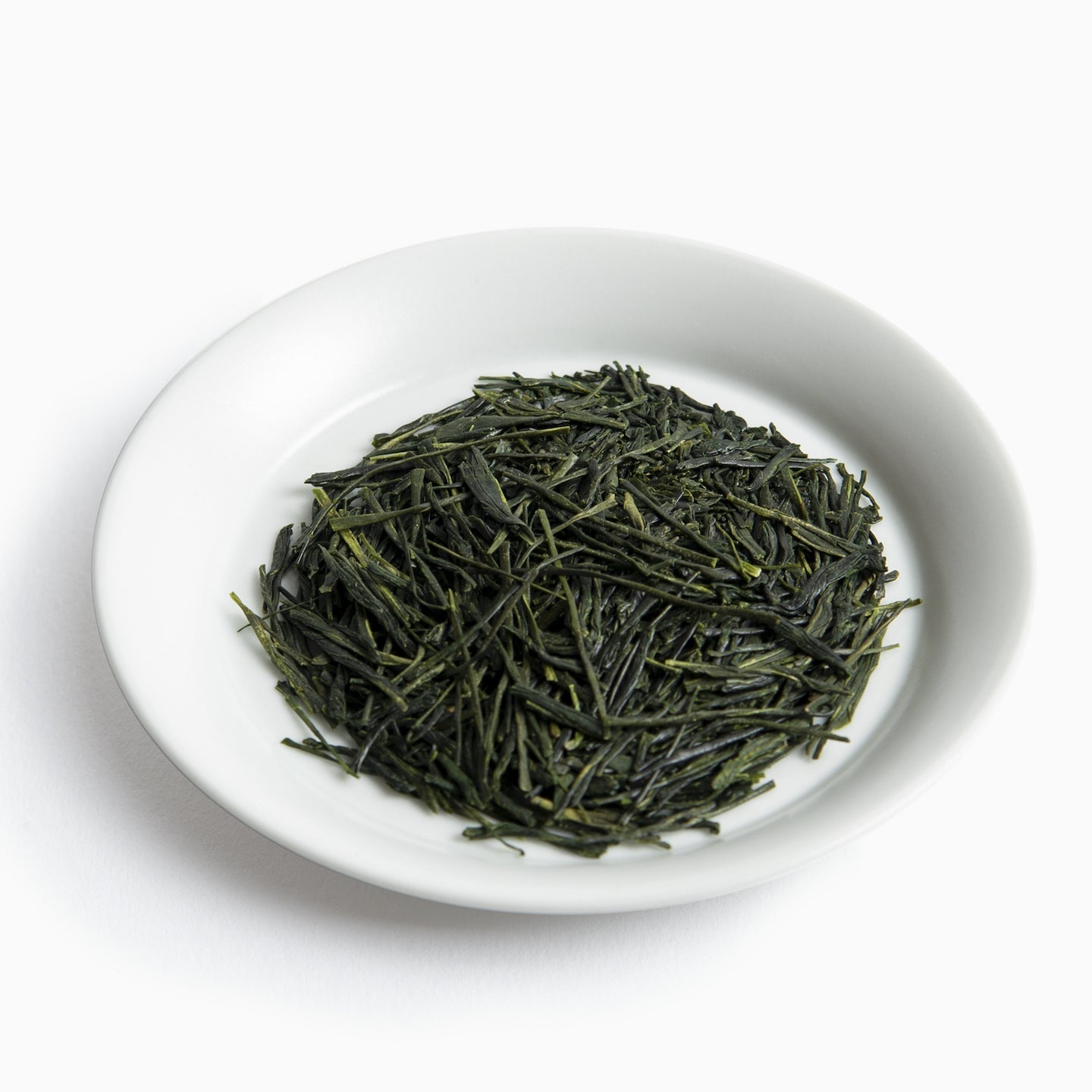 つやつやとした濃緑が美しく光ります。針のようにピンと伸びた浅蒸しです。一本一本が潰れずに丸い断面になるように撚られた茶葉は見事!ここまで美しい茶葉を製造することができる農家はごく稀で、完成度が非常に高いです。