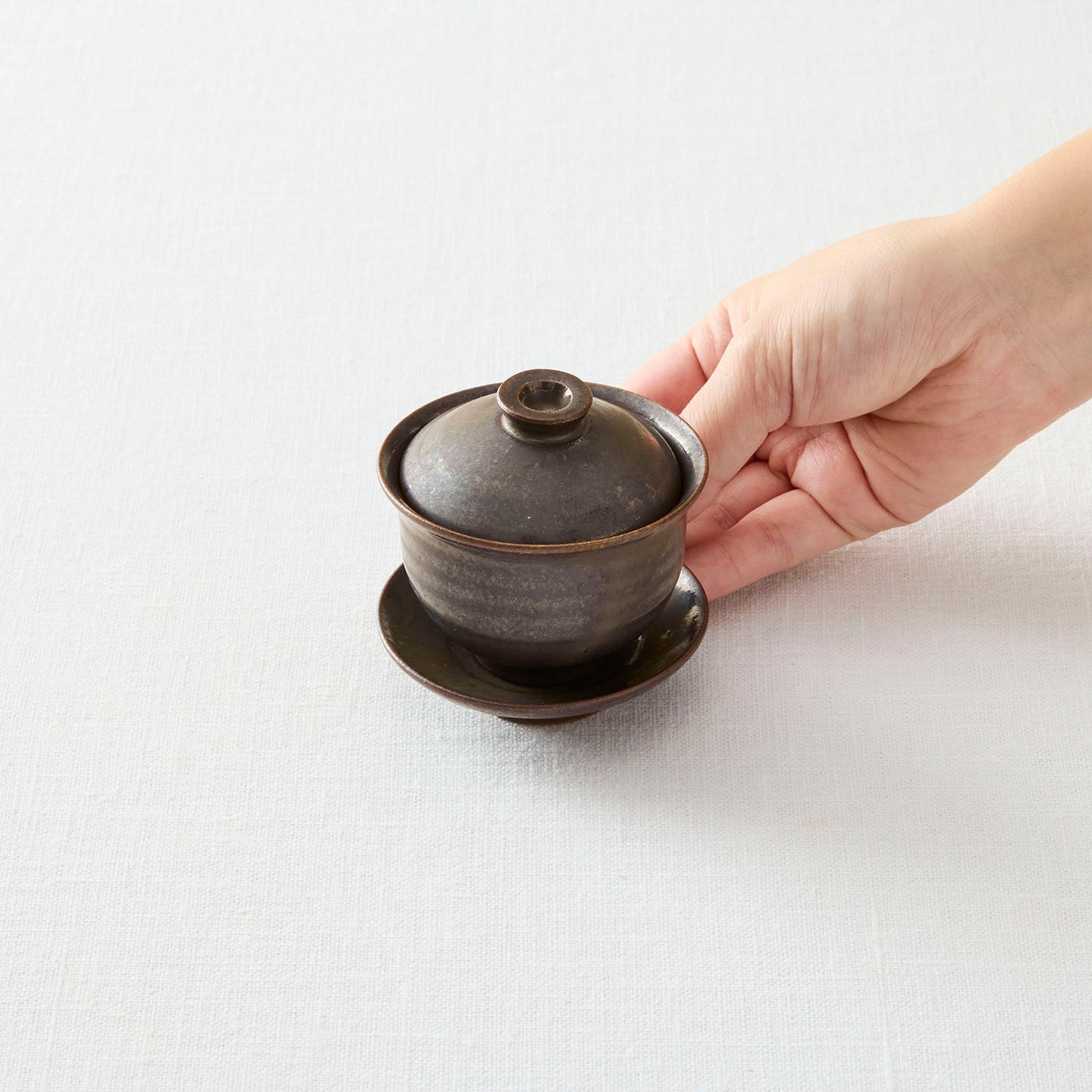 ミニ蓋碗(錆釉) ×1…蓋と受け皿が揃った小ぶりの蓋碗は、中国茶ビギナーにもおすすめ。これひとつで、日常のお茶時間がぐっと豊かに感じられます。