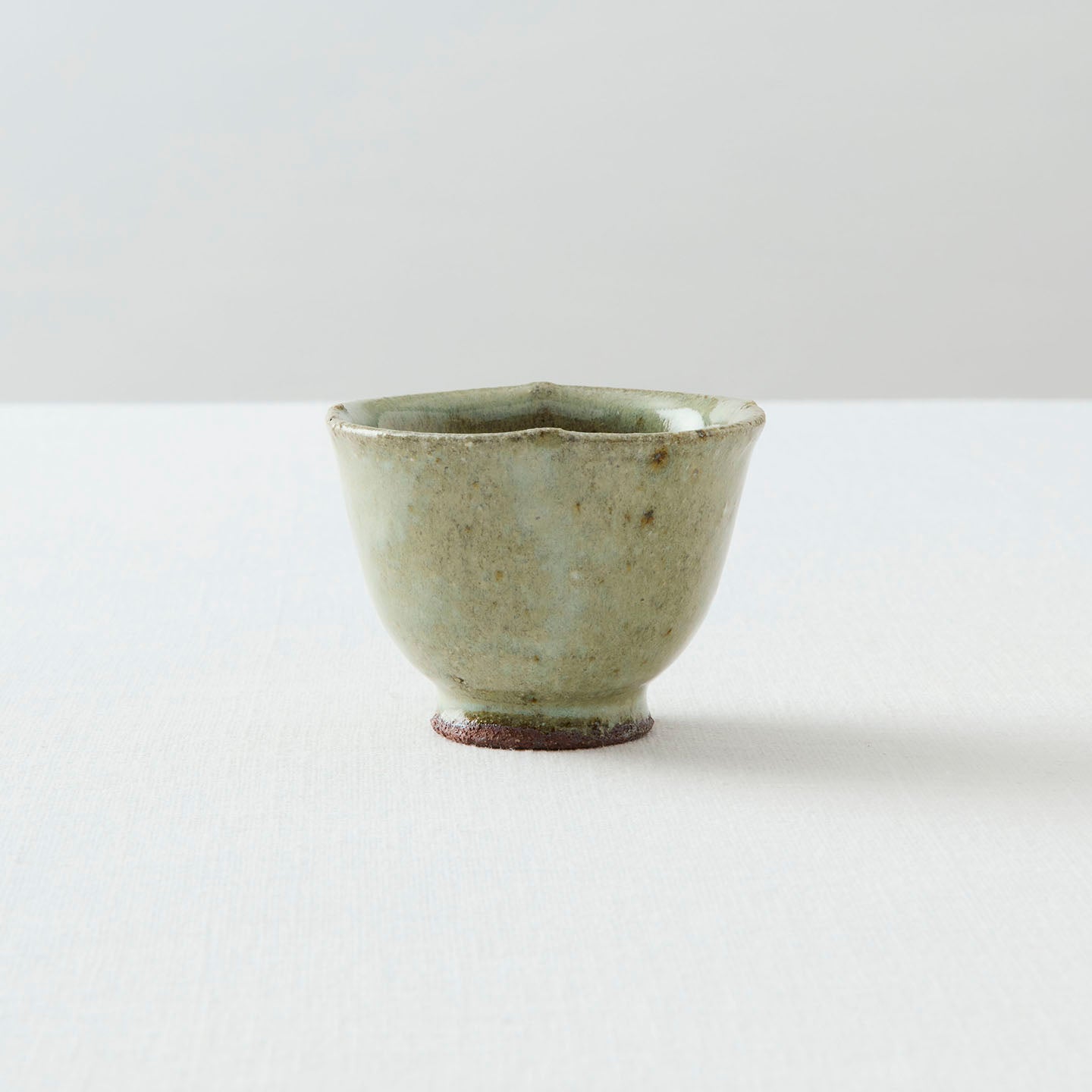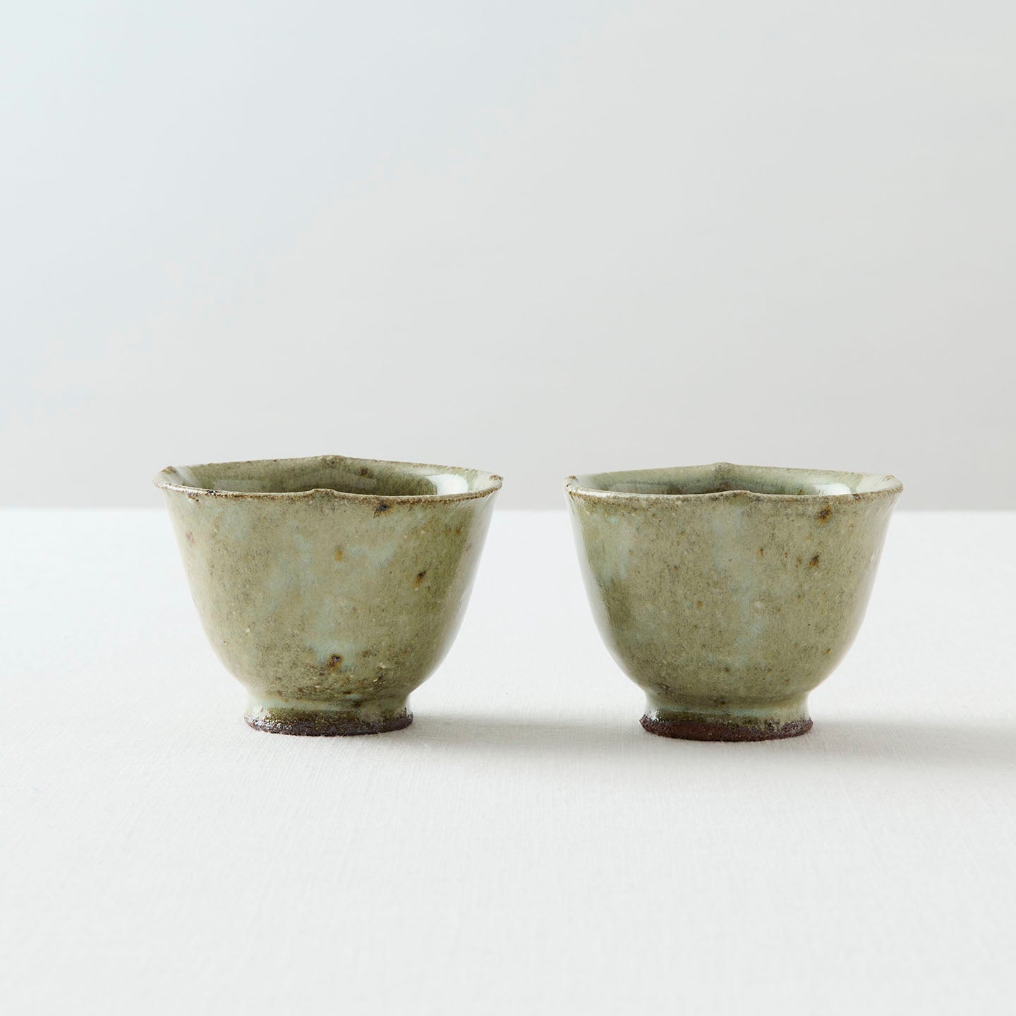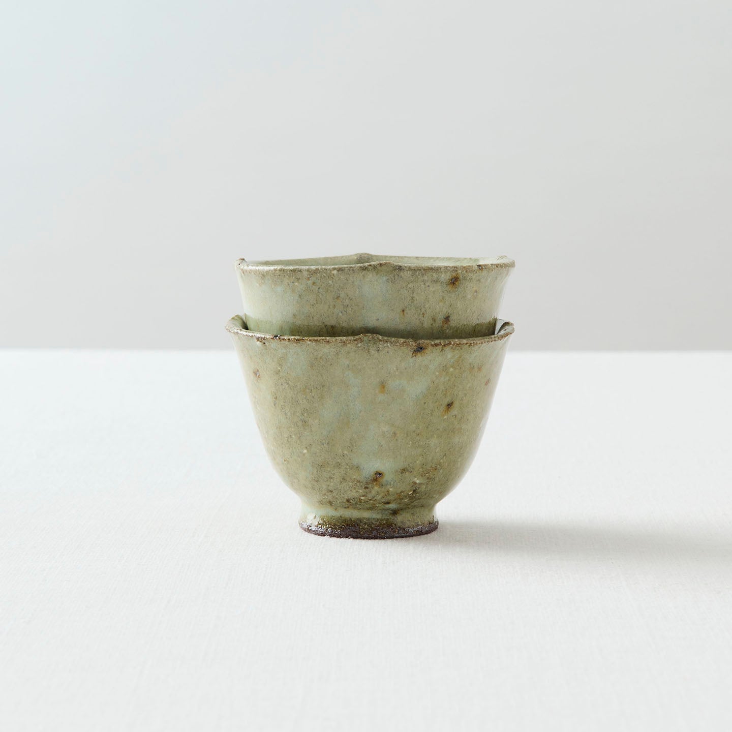 灰白花湯呑 ×2…上から見ると花のようなかたちをした湯呑。へこんだ部分が手に自然と馴染み、持ちやすく、お茶の時間をやさしく彩ります。