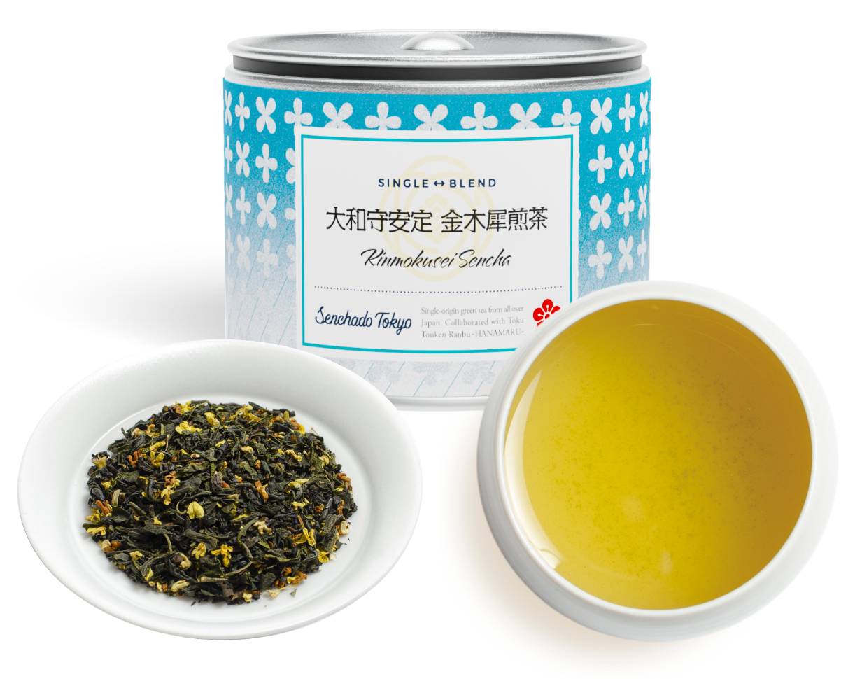「金木犀」の小さな花がちりばめられ、儚げな香りが立ち上ってくる煎茶。爽やかさとともに濃厚で華やかな香りが味わえる印象的な一杯。