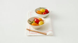 亀田文さんの面取り鉢と同時購入しました。形の可愛らしさと柔らかな感じが気に入り、実際手元に届き、やはり形の綺麗さ、可愛らしさに満足ですが、思ったより底面積が小さいので、薬味やタレ、プチ菓子(練り切り1つ)を入れるサイズ感で、ワンプレートに乗せる豆皿のようにも使おうと思っています。