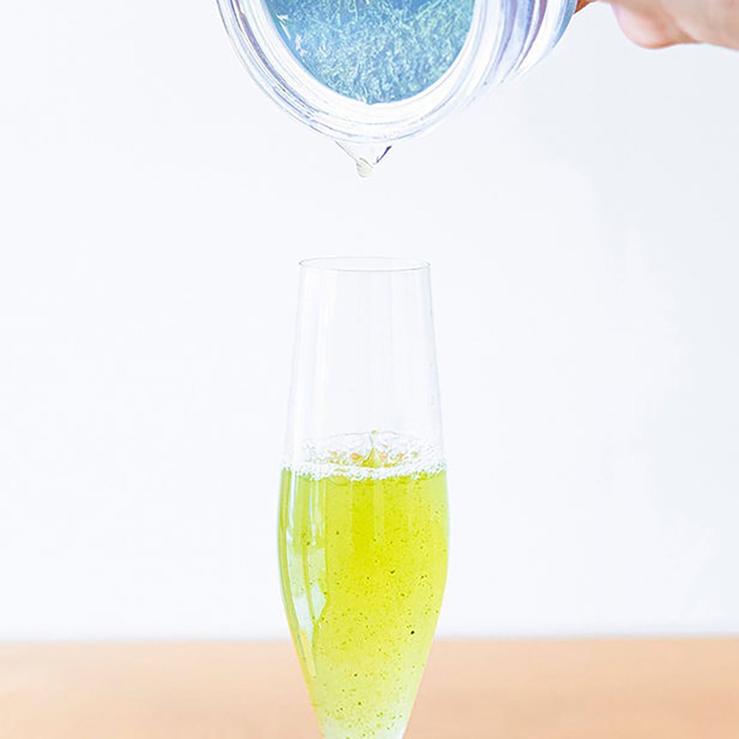 同じ飲み物でも、使うグラスによって驚くほどその味わいは変化します。特にワイングラスはその変化を楽しませてくれる最たるもの。日本茶もワイングラスで飲むことで、さらなる嗜好品へと変化します。 今回は、狭い飲み口のフルートグラスで楽しむお茶のレシピをご紹介します。見た目の華やかさだけでなく、このグラスを使えば、お茶本来の酸味や苦味を引き出してくれるんです。 煎茶は、「036 みなみかおり」をセレクト。美しく上品で、香り高い余韻が幾重にも重なって口の中をたゆたいます。フルートグラスを使い、香りを引き立たせるだけでなく、新たな煎茶を楽しむための微発泡茶を作っていきます。