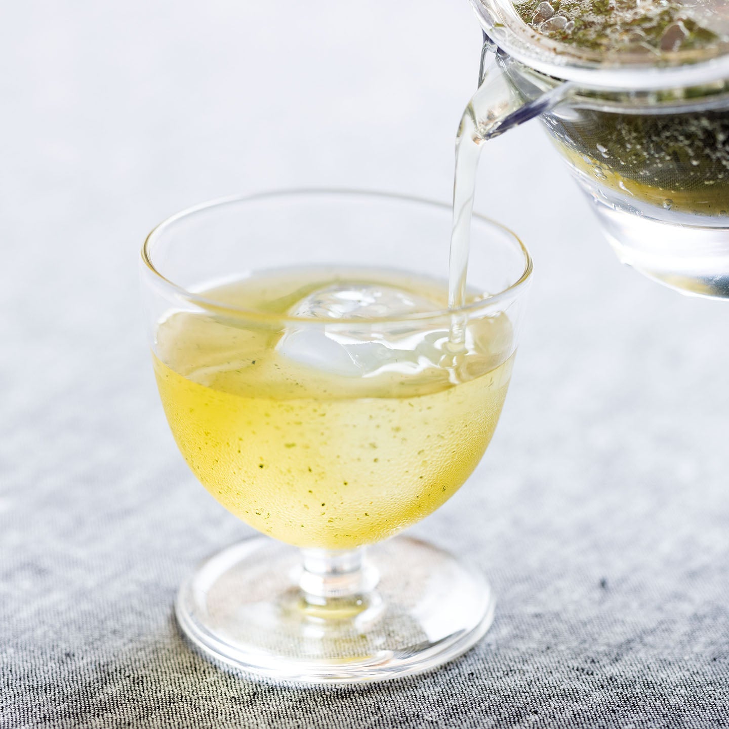 私たちが夏におすすめしている、ティーソーダ。一煎目を濃いめに急冷して、二煎目を炭酸で抽出するレシピです。