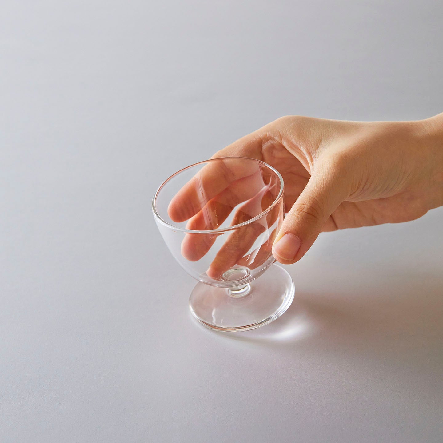 プクッとした形がかわいい脚付ミニグラス。オンラインストアで言うのもなんですが、見て、使ってみるとこのかわいさが分かります。