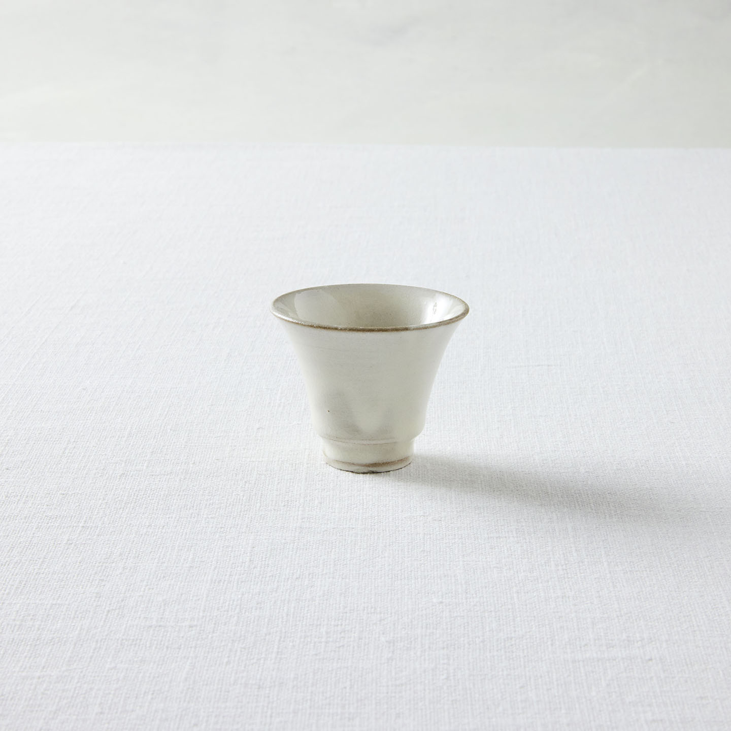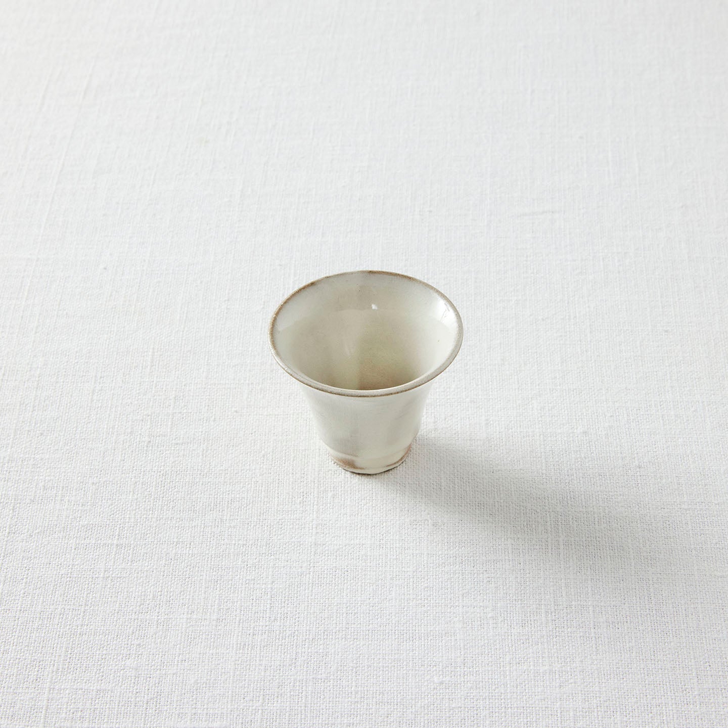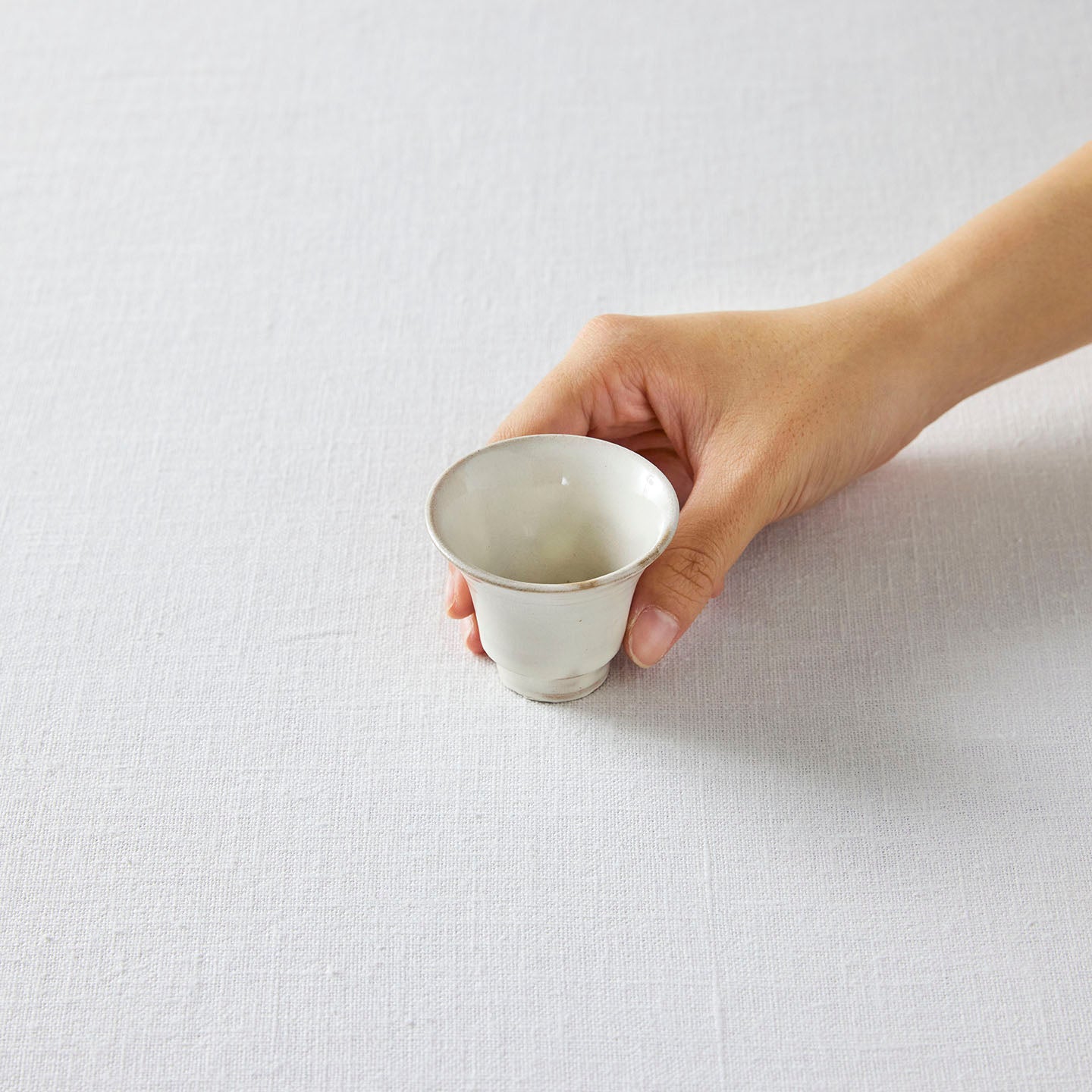 中国茶用に作られた茶杯。中国茶だけでなく、玉露などのお茶を少量嗜むのにもいいサイズ。そのなめらかさが目を引く荒賀さんの「粉引(こひき)」は、温かみのある白を感じます。きっと、煎茶の淡い水色を綺麗に映してくれることでしょう。