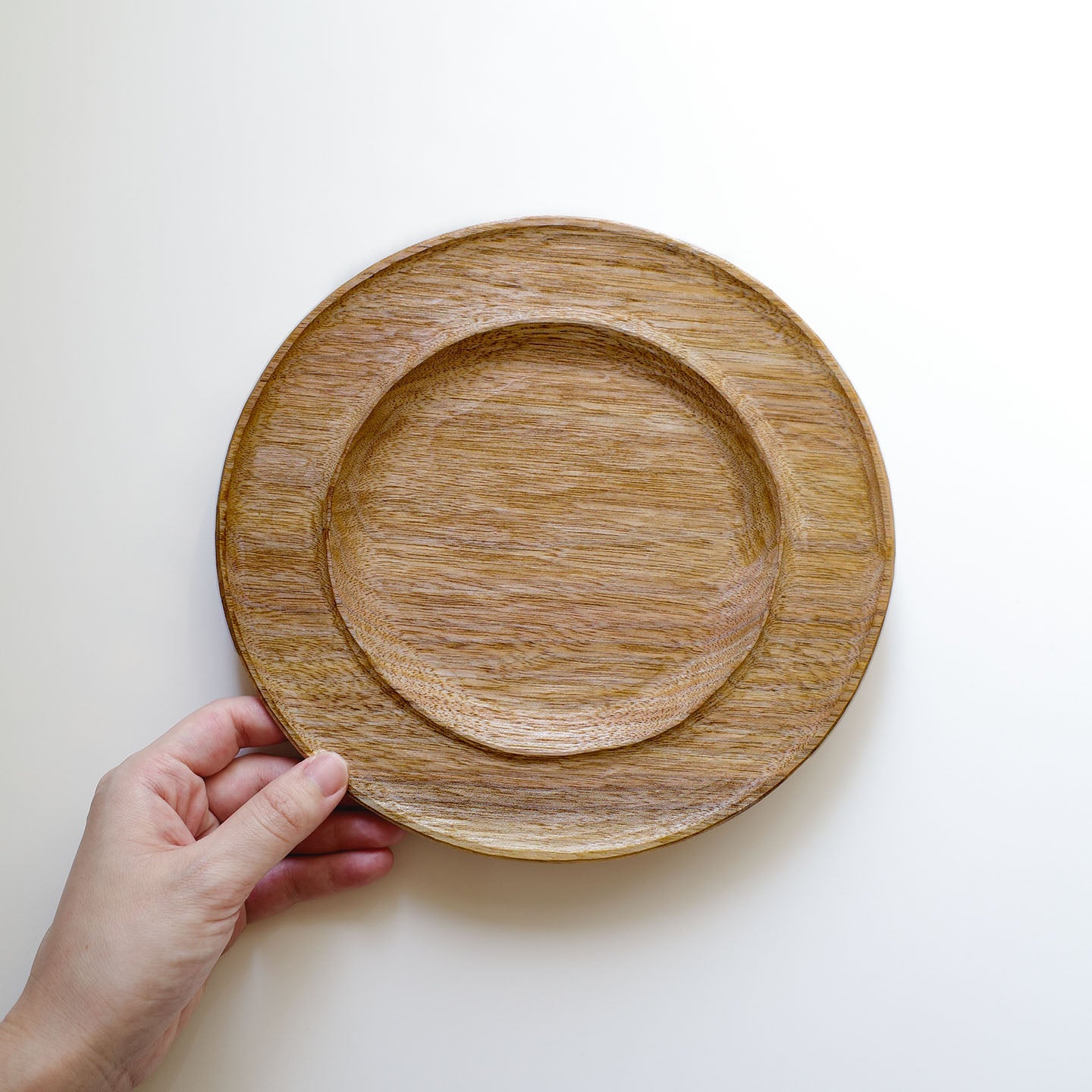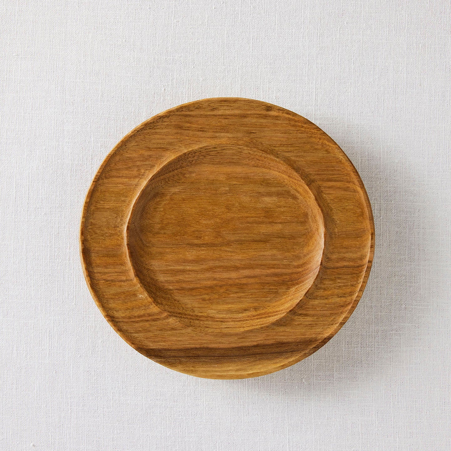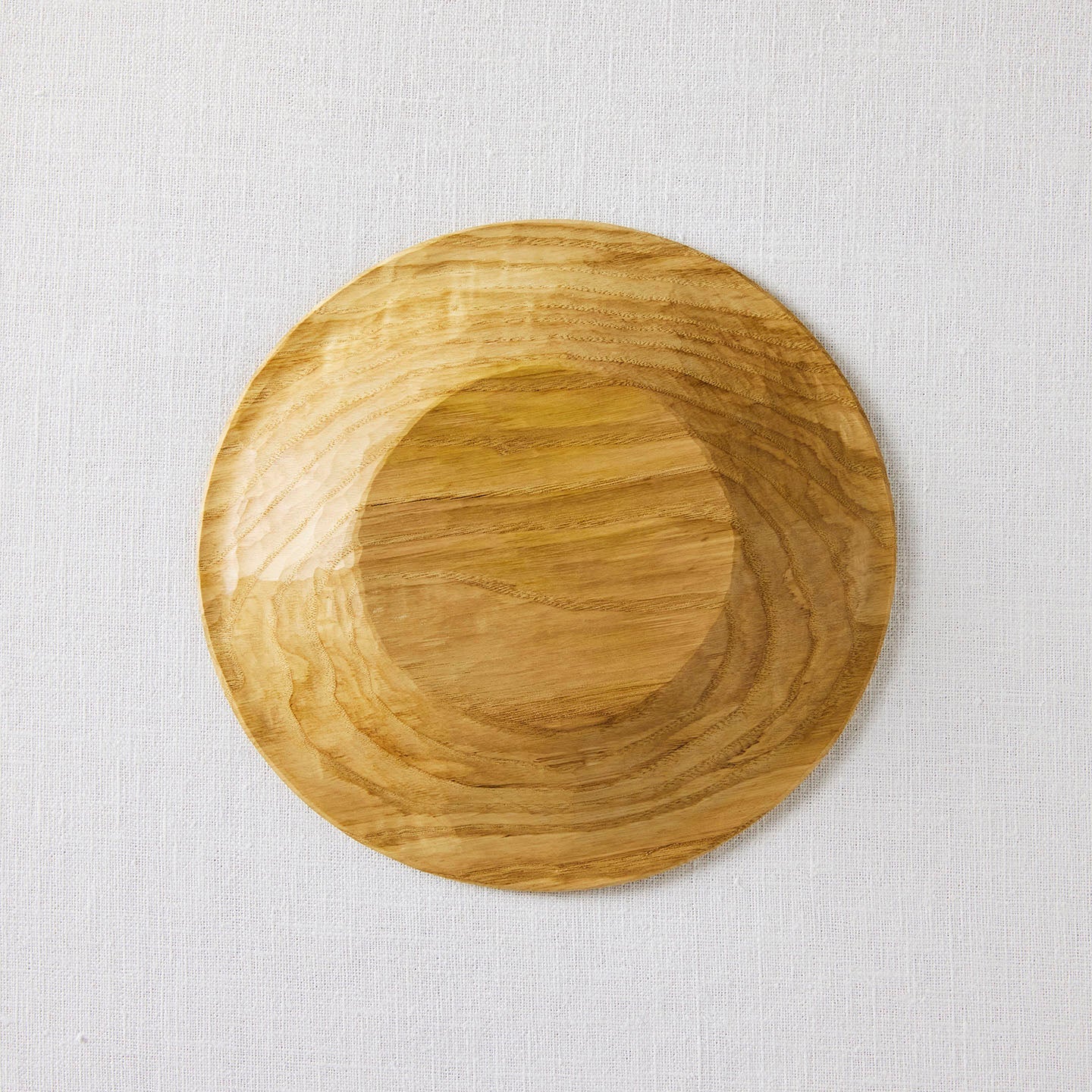 「八角皿、楕円皿ともに直接料理を乗せるだけでなく、ほかの器の台として使用することをイメージして作りました。とくにガラスの器は非常に相性がよく、パートナーが営む食堂ではガラスの器に入れた冷たいスープやサラダなどを木皿に盛り付けて提供しています」(山田さん)