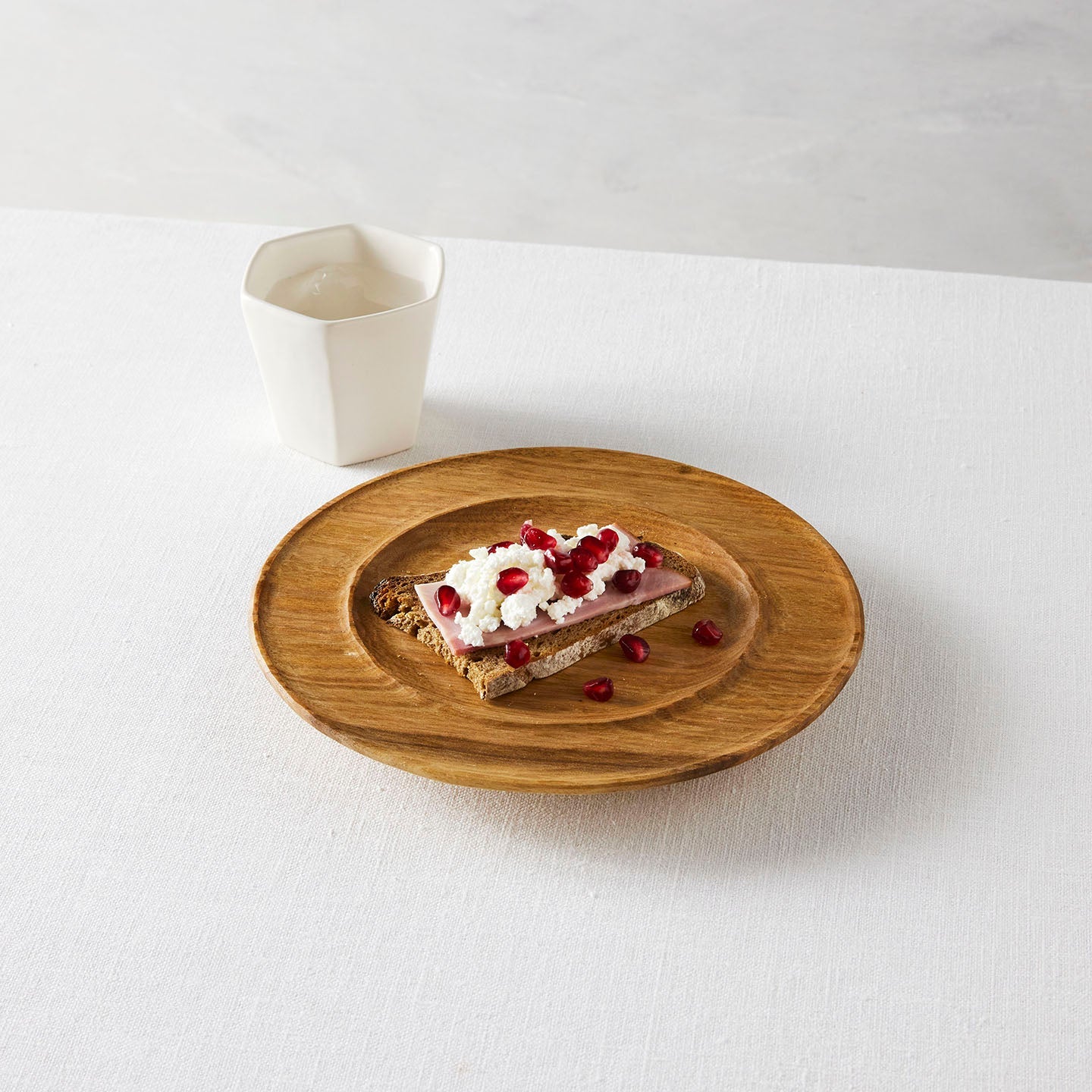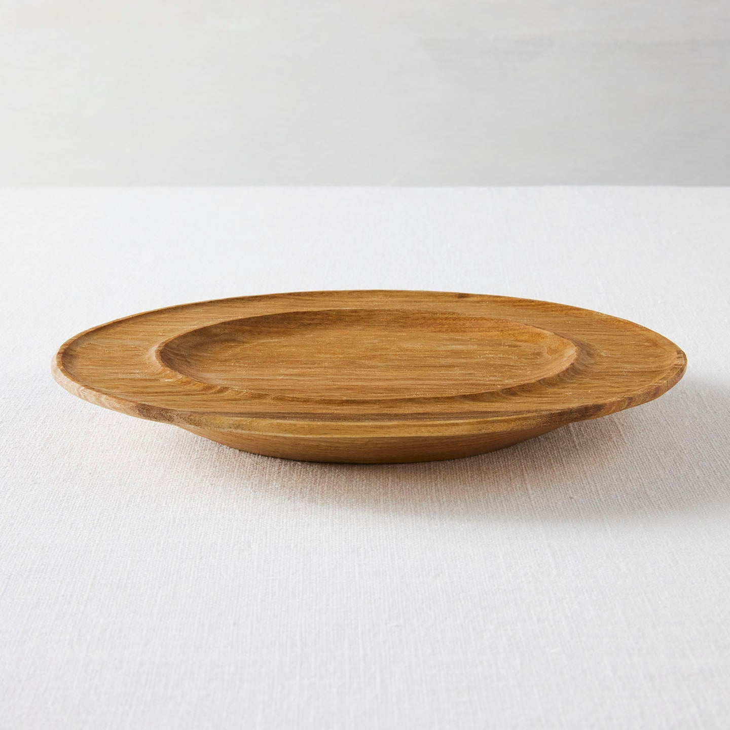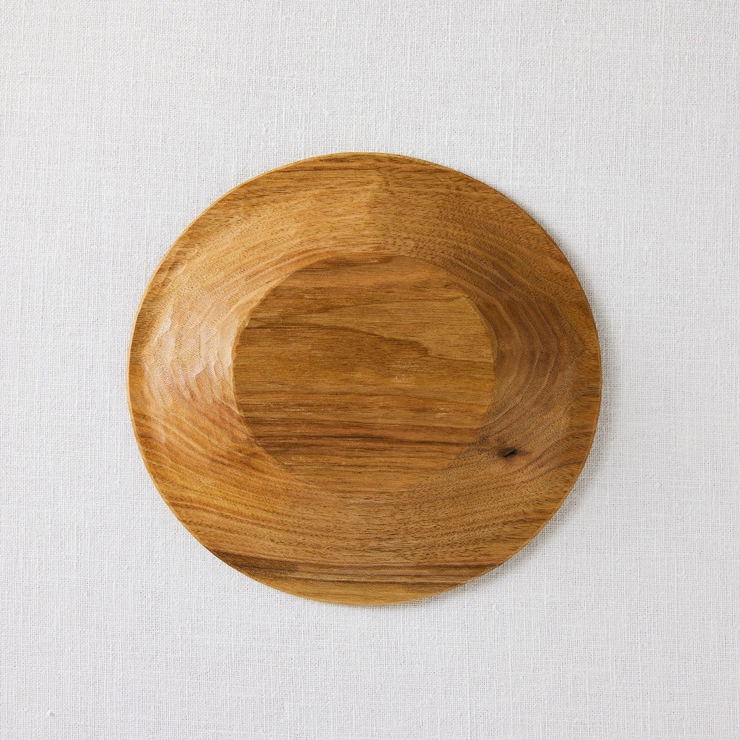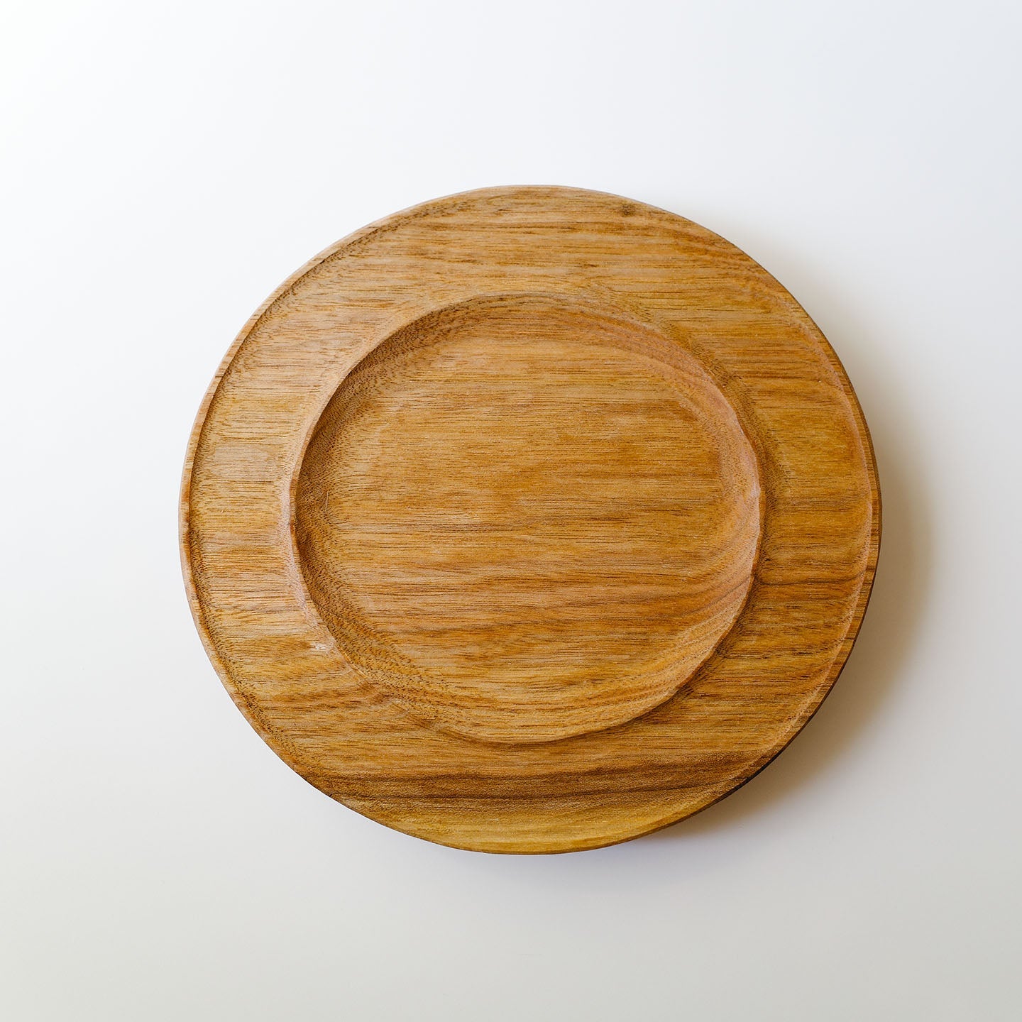 「八角皿、楕円皿ともに直接料理を乗せるだけでなく、ほかの器の台として使用することをイメージして作りました。とくにガラスの器は非常に相性がよく、パートナーが営む食堂ではガラスの器に入れた冷たいスープやサラダなどを木皿に盛り付けて提供しています」(山田さん)