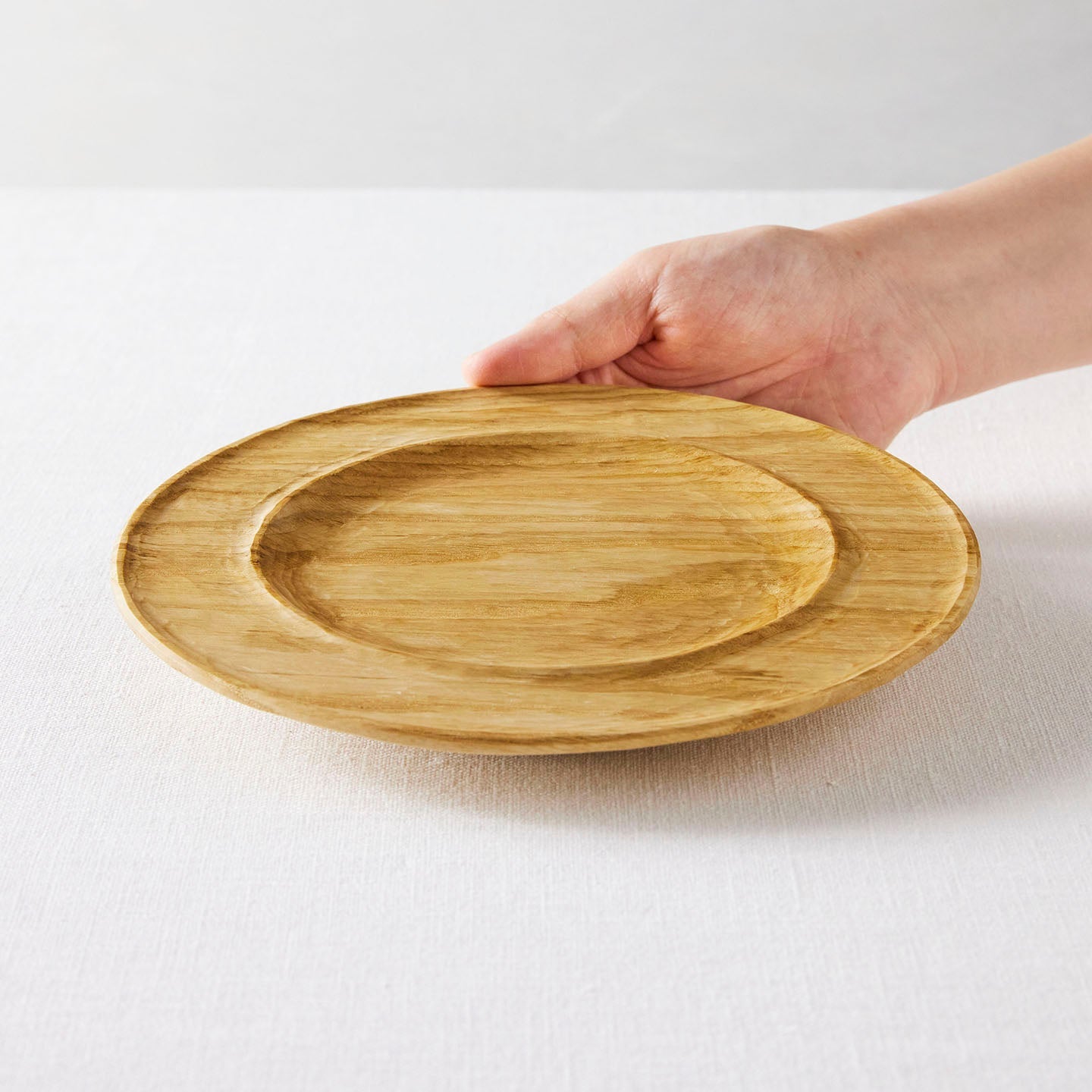 「楕円皿」は、ぱっと見は正円のように見えますが、よく見るとゆるやかな楕円形。底に厚みがあるので、食卓にのせたときに少し高さが出て見栄えもよい器です。パン皿やケーキ皿として使うのはもちろん、サラダや肉料理などを盛り付けても。