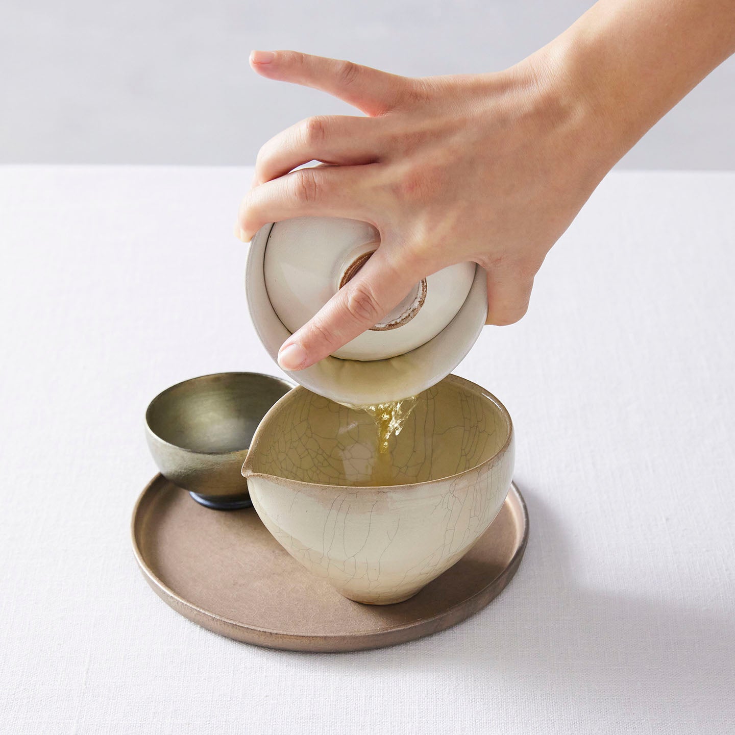 ・器への染み込み=貫入(器によっては、お茶などを入れると発生します)を避けたい方は、目止めを行っていただくのがおすすめです。目止めを行わずに使用するのも、器がどんどん育っていき、唯一無二の表情を生み出します。(目止めとは、お米の研ぎ汁などで20分ほど煮沸する方法です。小麦粉や片栗粉大さじ1-2でも代用できます。)